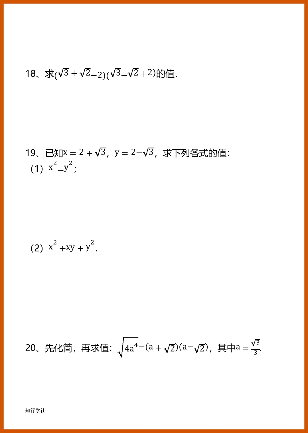 【免费下载】2026新版八下数学第一次月考专项练习二次根式混合运算 | PDF完整高清电子版可打印