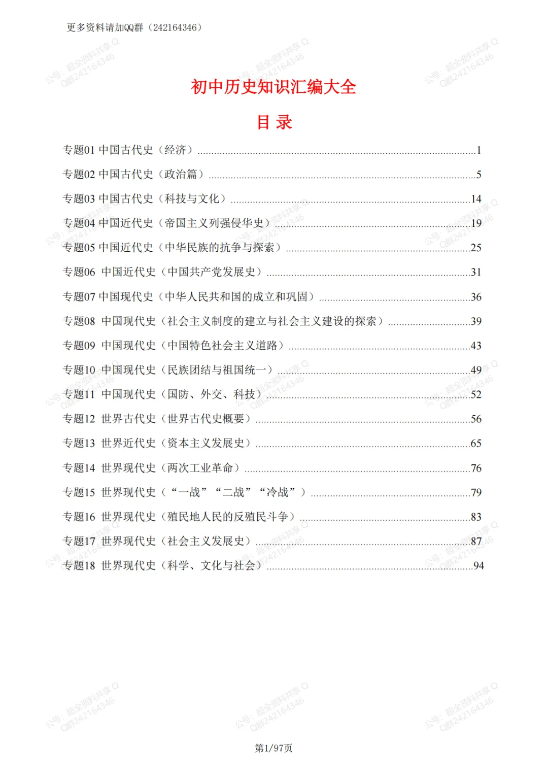 初中历史知识汇编大全(共18个专题)(pdf分享)