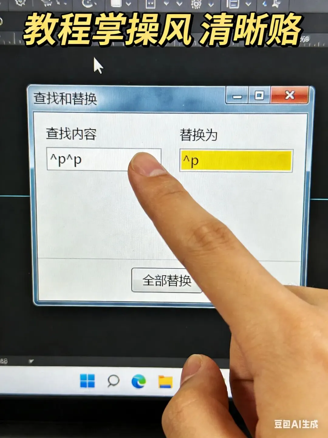 2.在替换为框输入:^p3.点击【全部替换】,多余空行一键清空,文档排版立马规整。