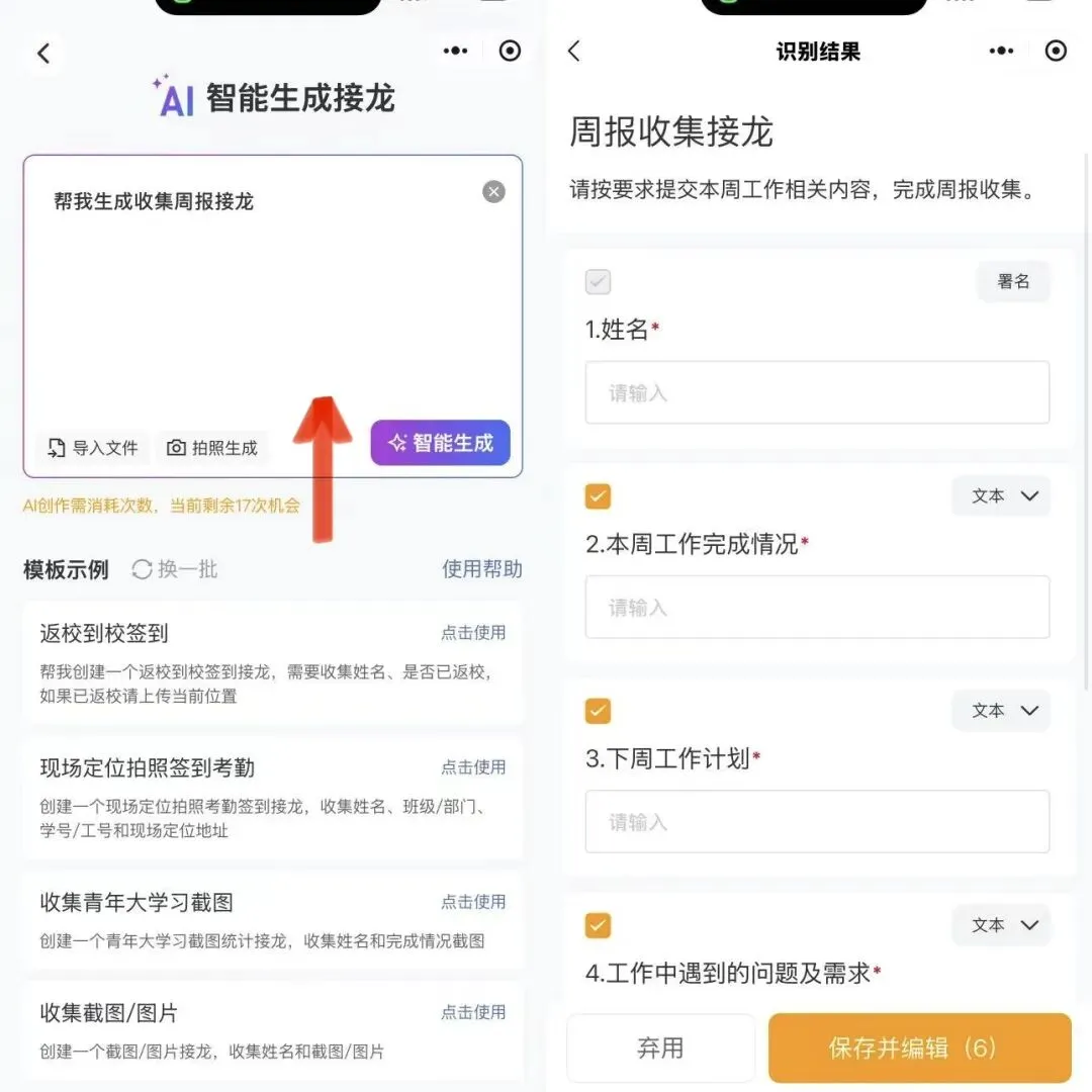 和其他表单工具需要手动创建表单、设置填写格式不同,接龙管家实现了 AI 自动化创建。