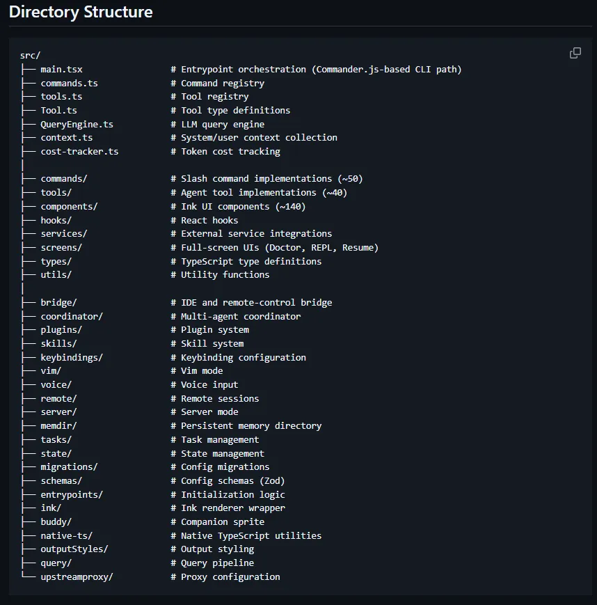 Claude Code泄露源码的GitHub镜像仓库目录结构示意
