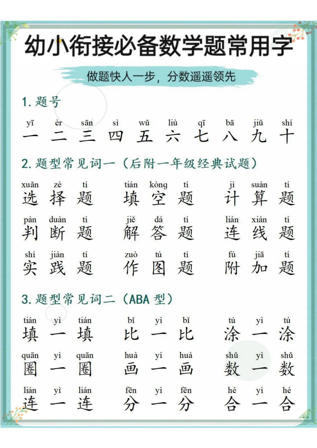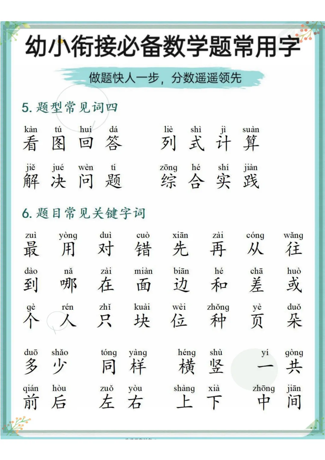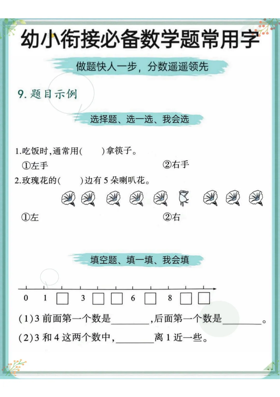 幼小衔接必备数学题常用字,电子版可打印