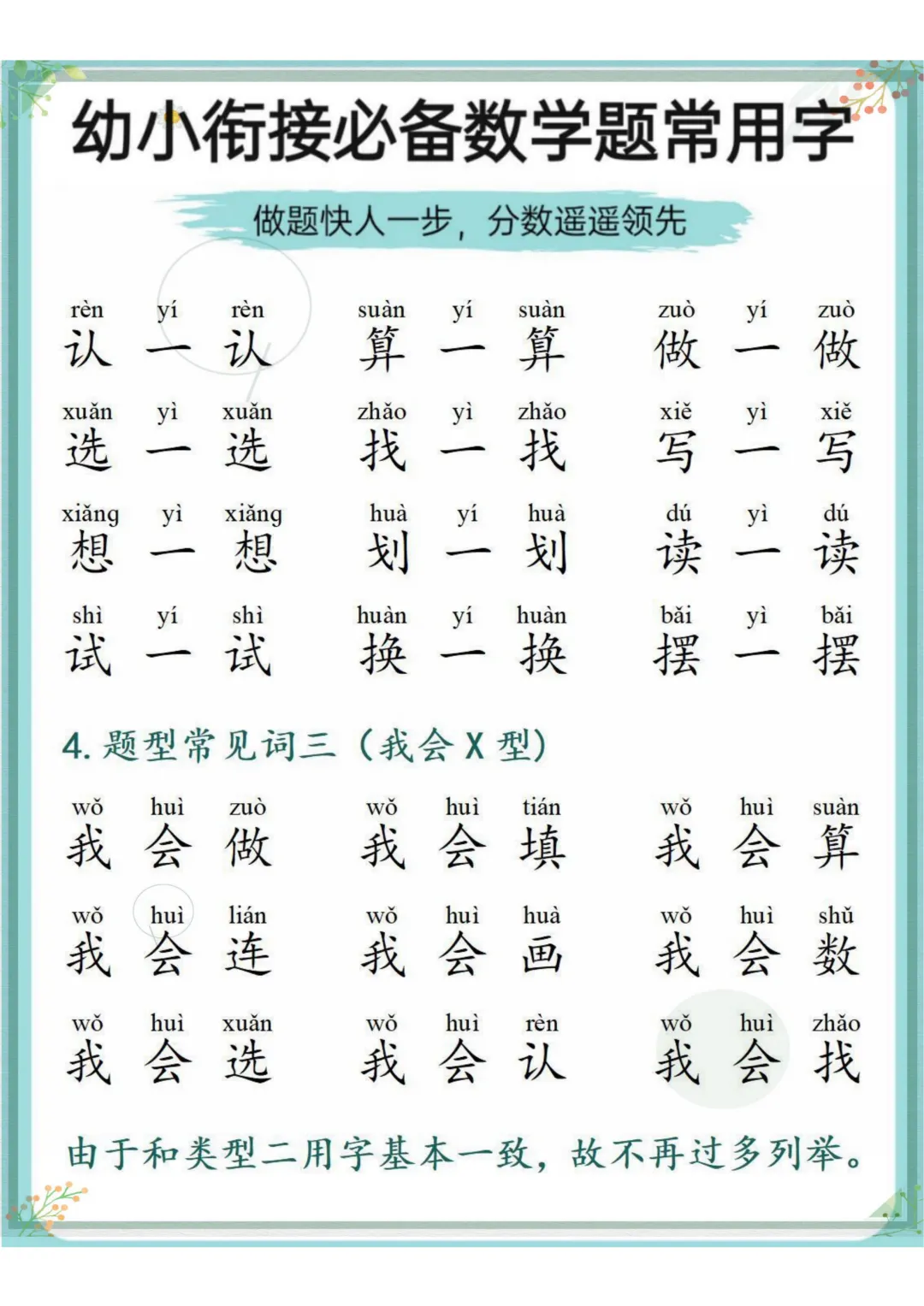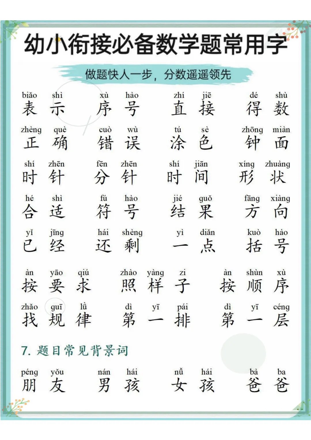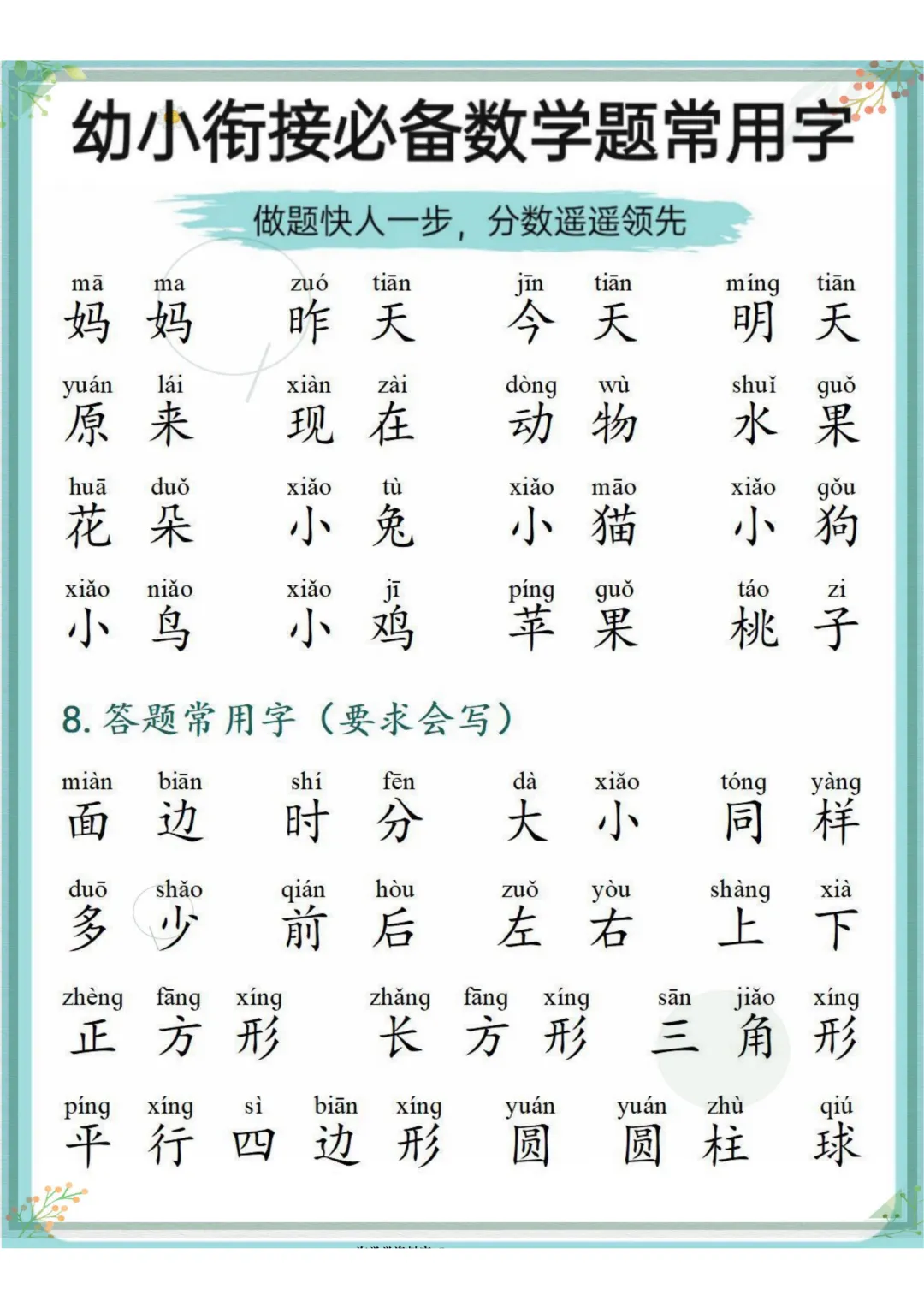 幼小衔接必备数学题常用字,电子版可打印