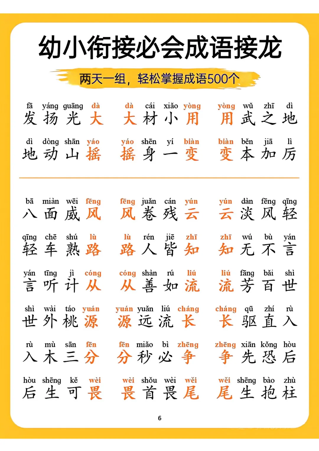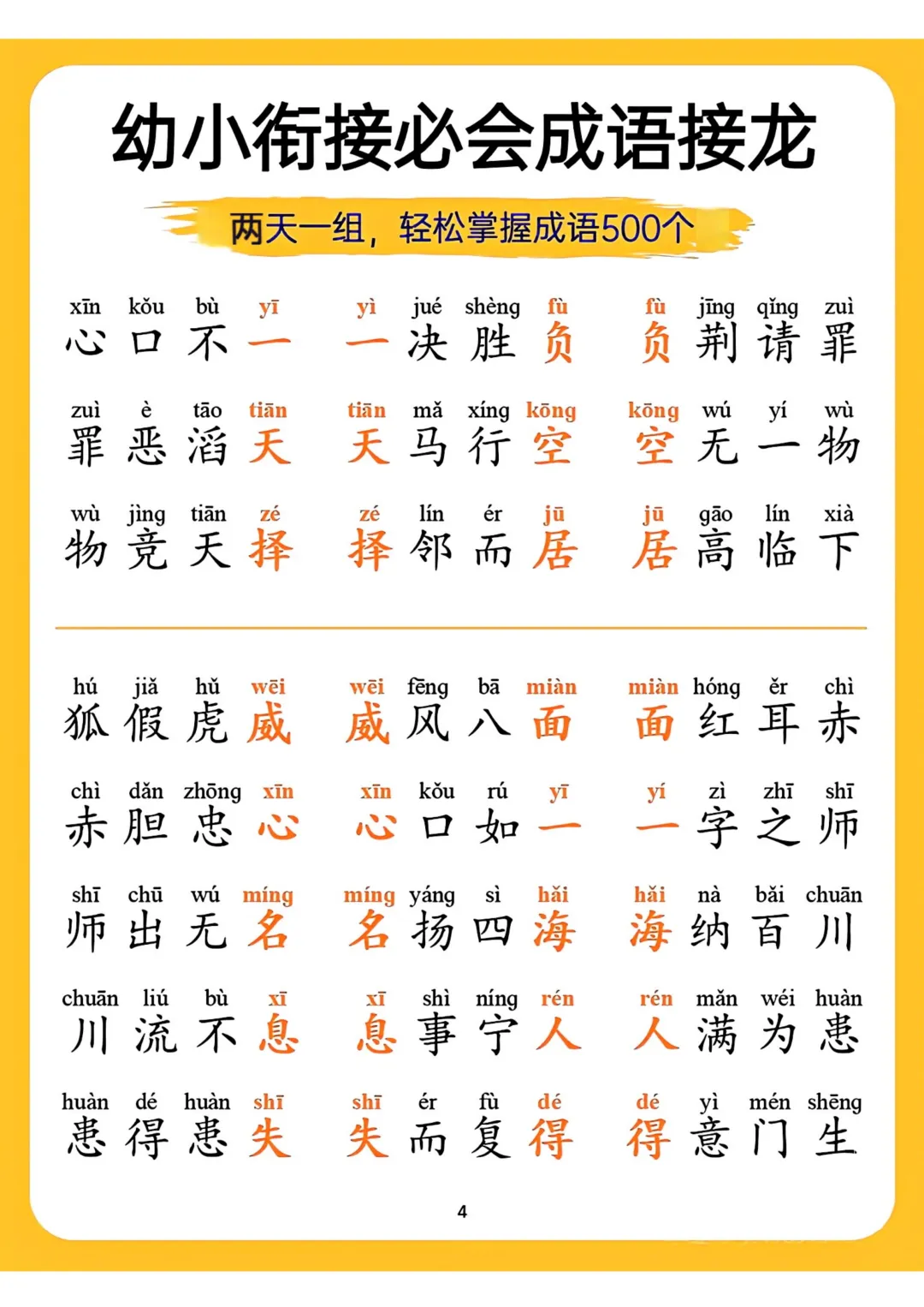 幼小衔接必会成语接龙18页,电子版可打印
