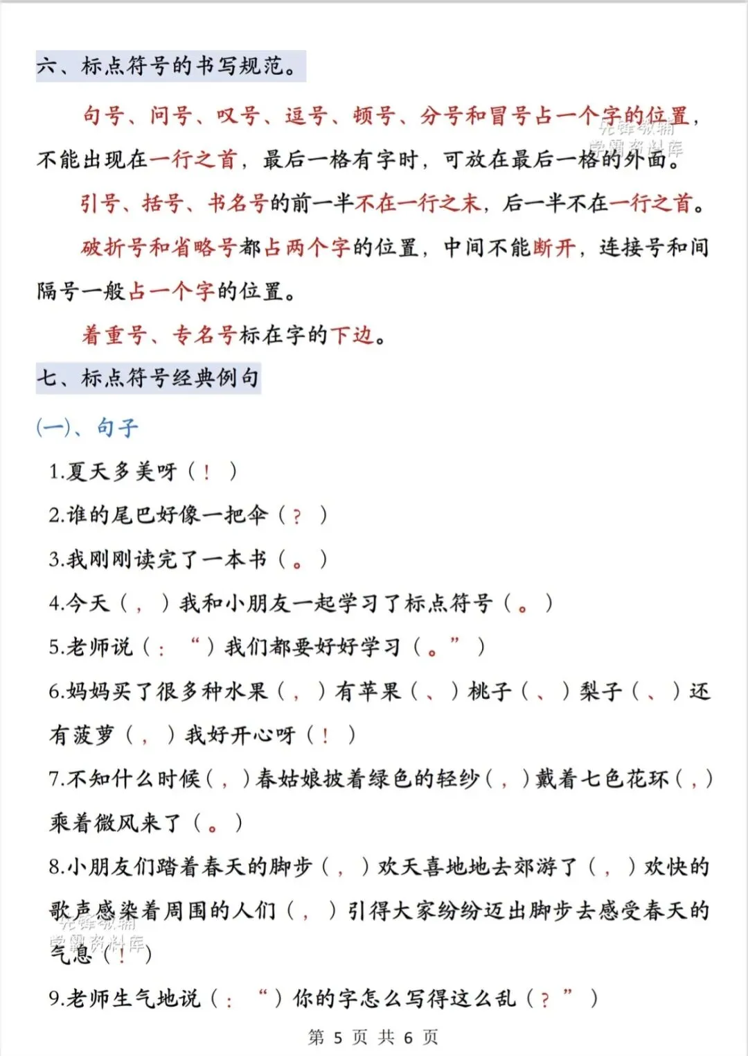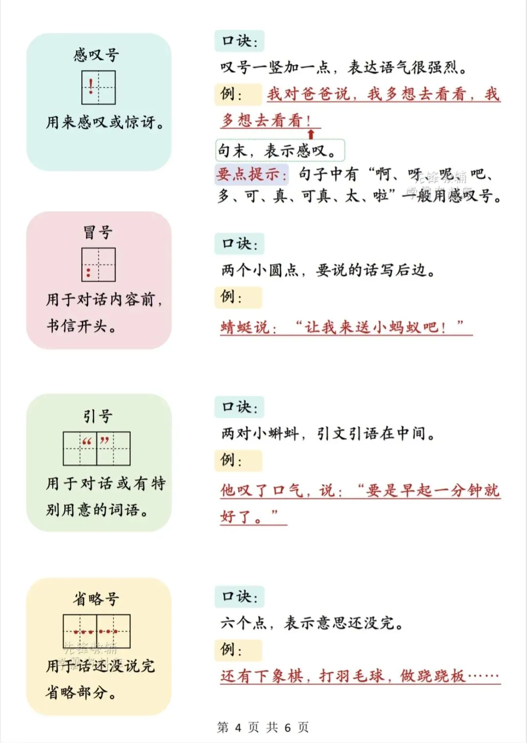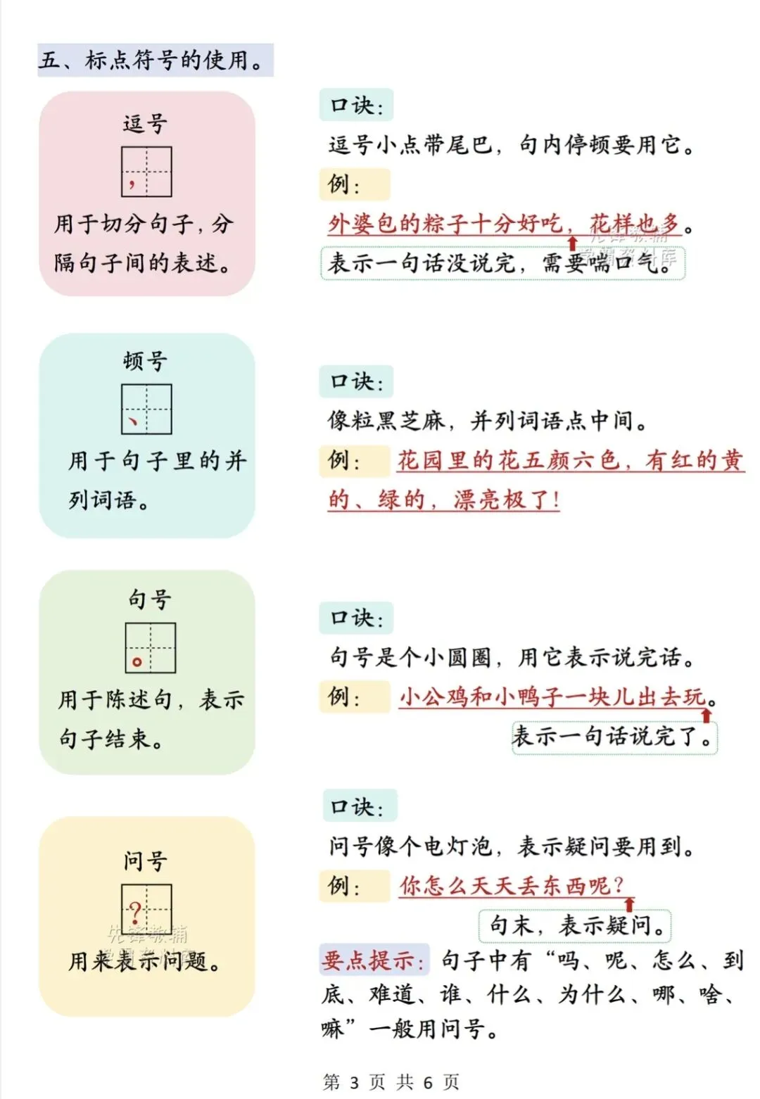 今日分享:《一年级下册语文标点符号》核心知识点: