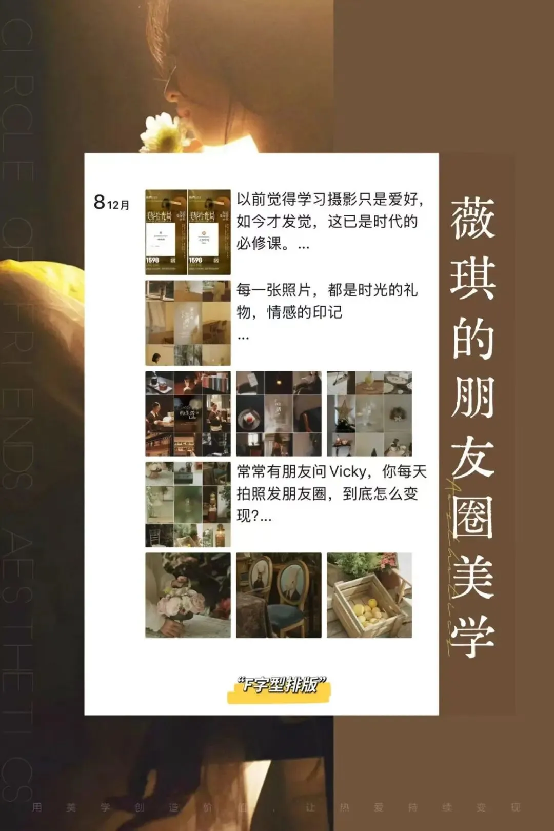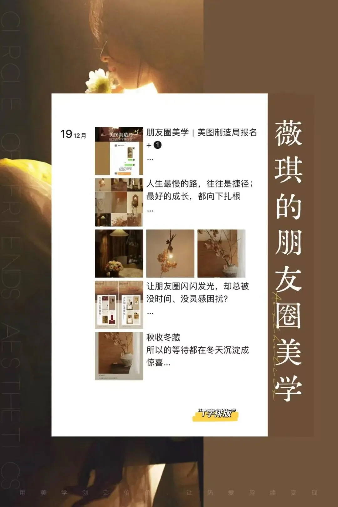 请你多言欢喜日常,把注意力放在有光的方向;请你藏得住心事,守住自己的边界和能量;请你日日新我,让朋友圈成为你成长的见证。