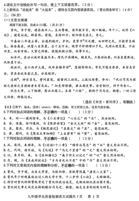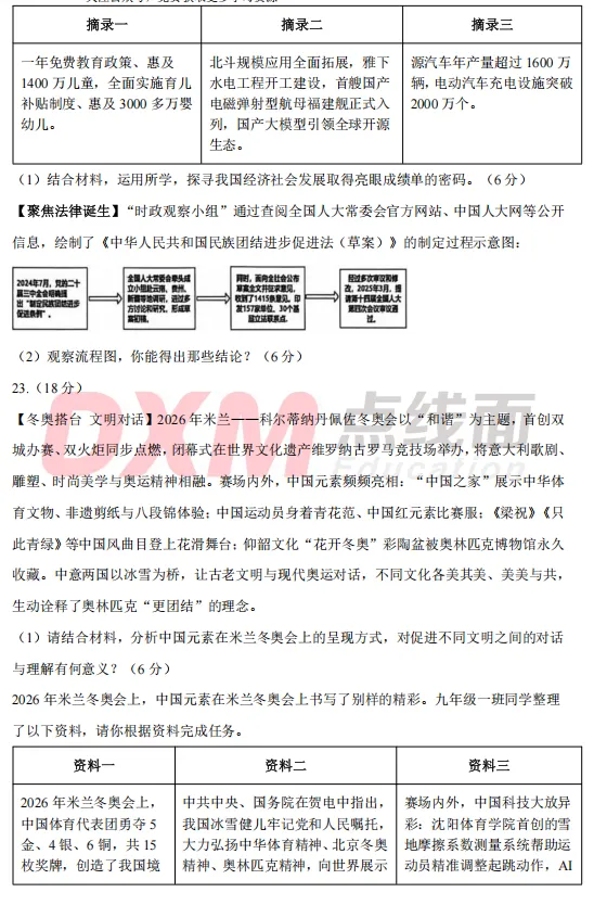 电子版及解析答案文末获取~因场地有限,节选整理,含初中九科