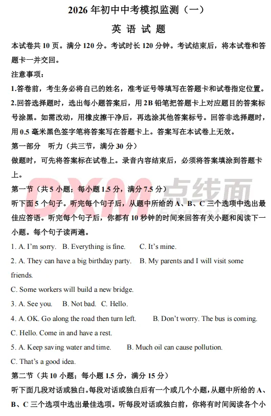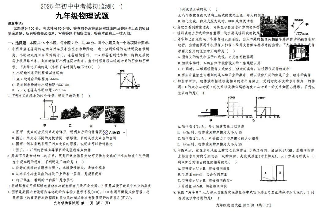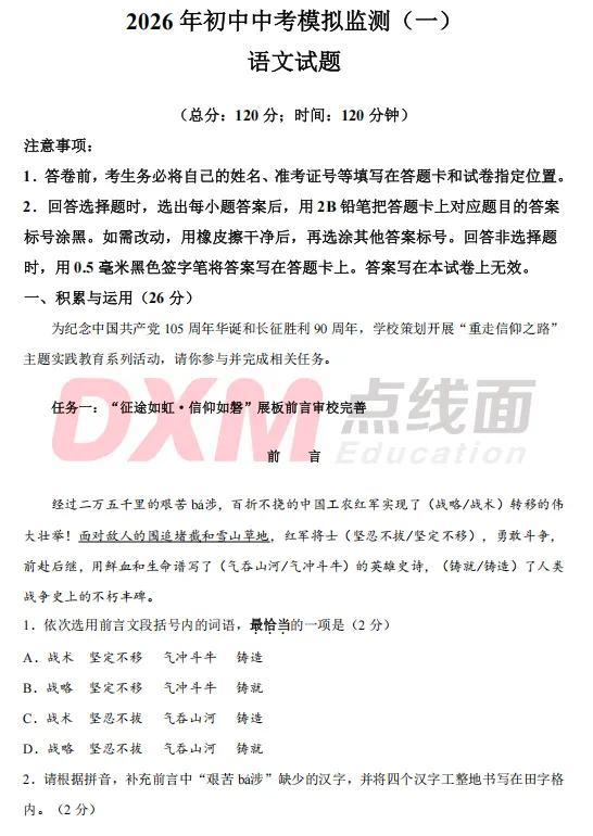 欢迎来到真题系列模块,继续给大家梳理各地2026中考一模真题,方便大家练习冲刺~
