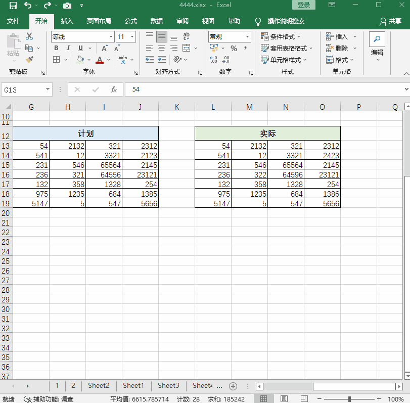 当我们想核对计划和实际的数据时,可以先将计划数据「复制」,然后在实际数据处「右键鼠标」 — 「选择性粘贴」中勾选「减」,就可以看到异常数据了。