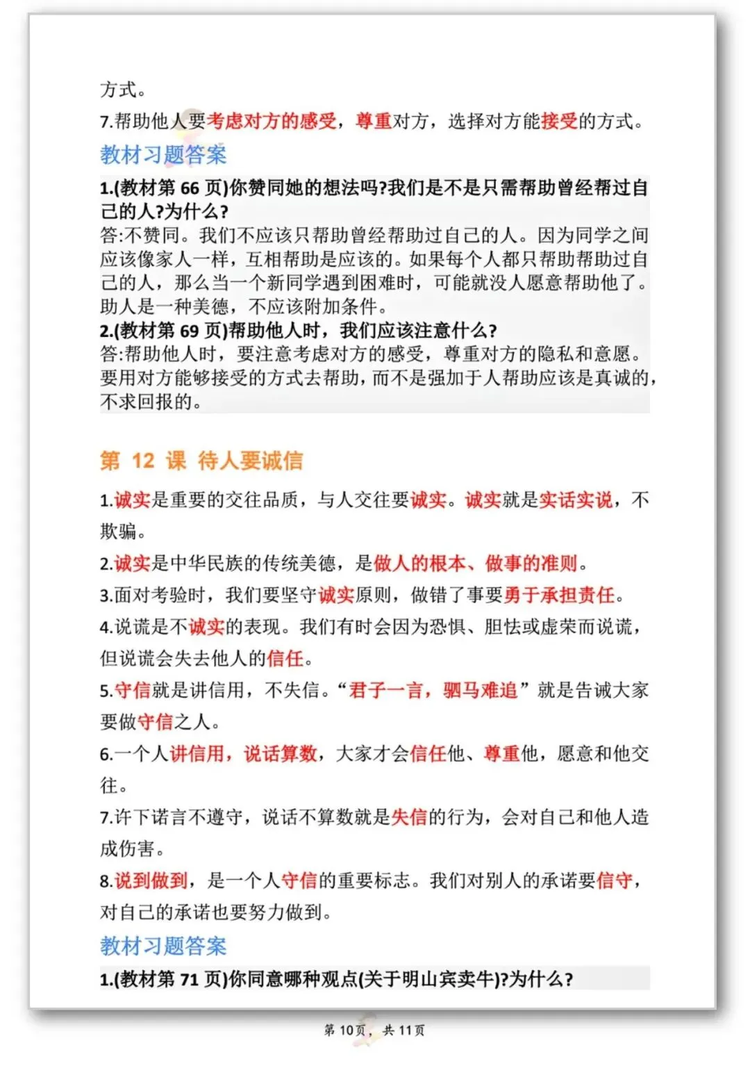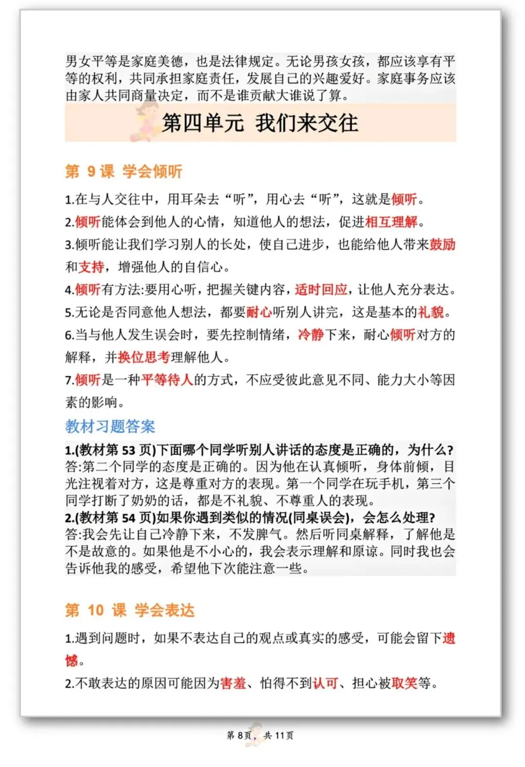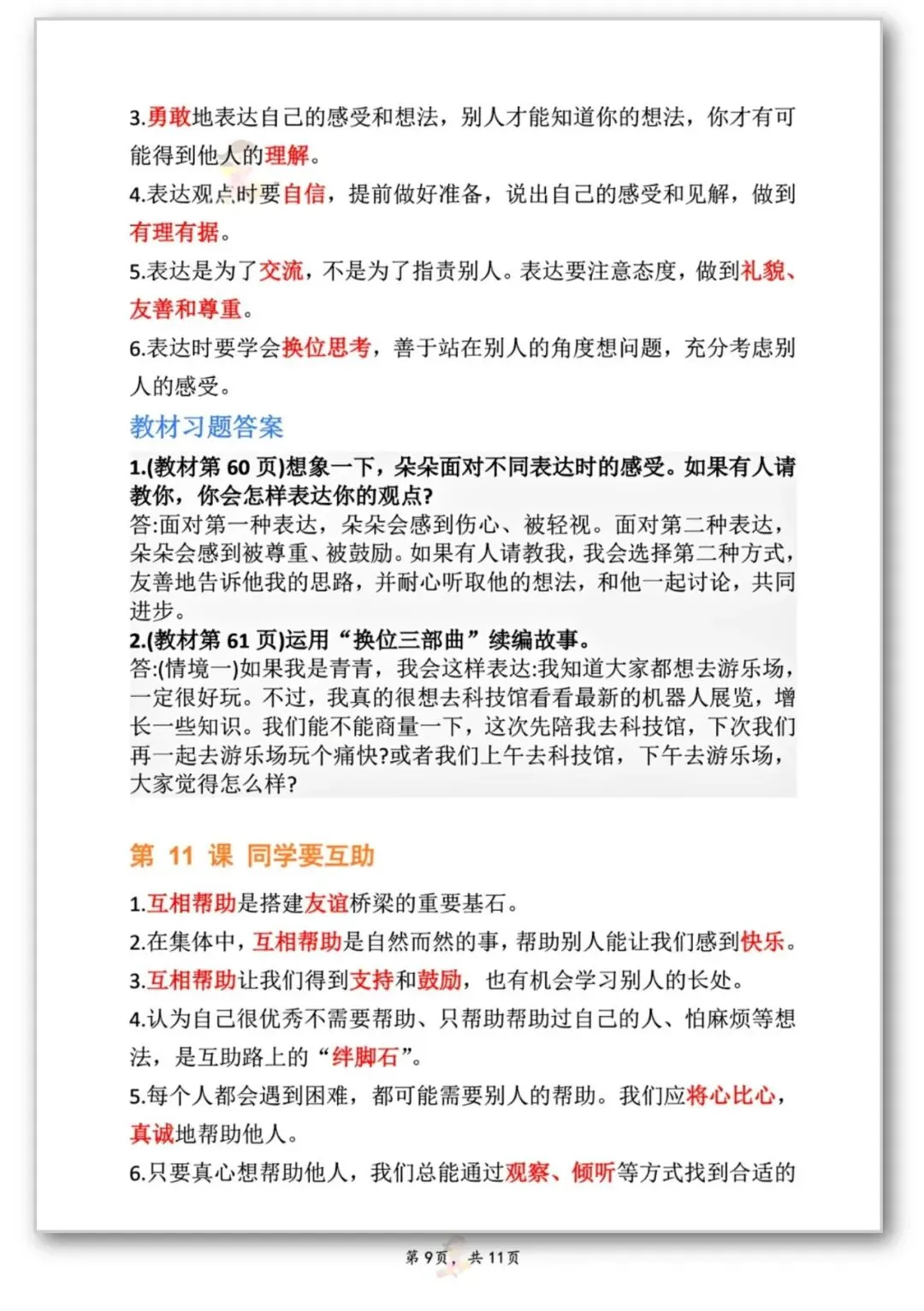 26春季新版三年级道德与法治【知识点】可打印电子版