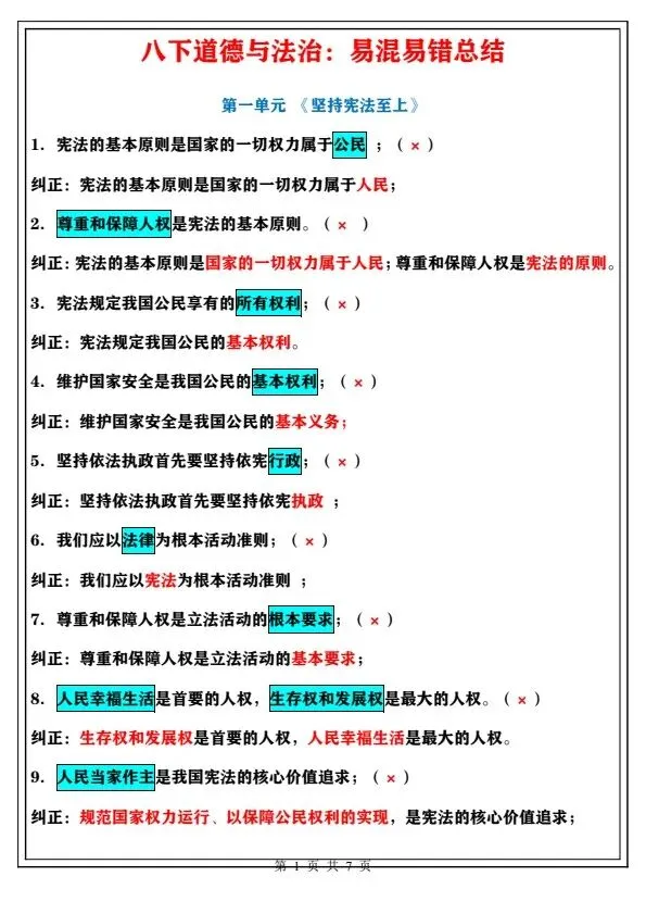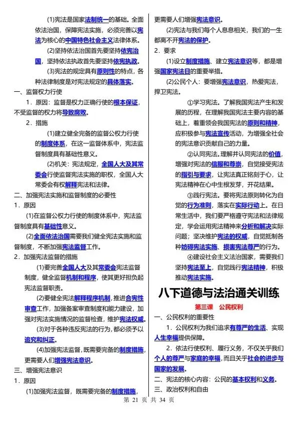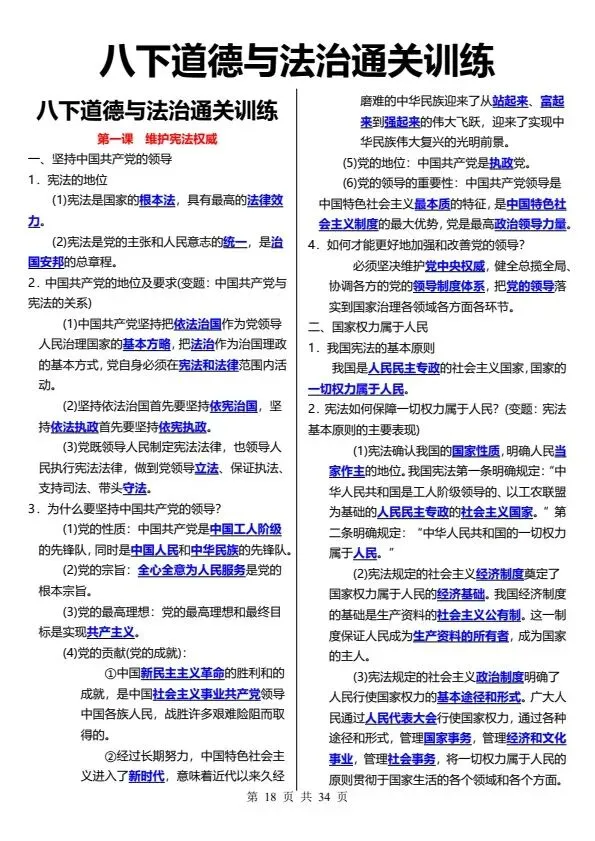 新26春八下道德与法治通关训练(完整电子版可打印)!家长关注收藏,让孩子用高效的方法学透知识点,用优质的资源为学习赋能,在成长的赛道上稳步前行,轻松提分!