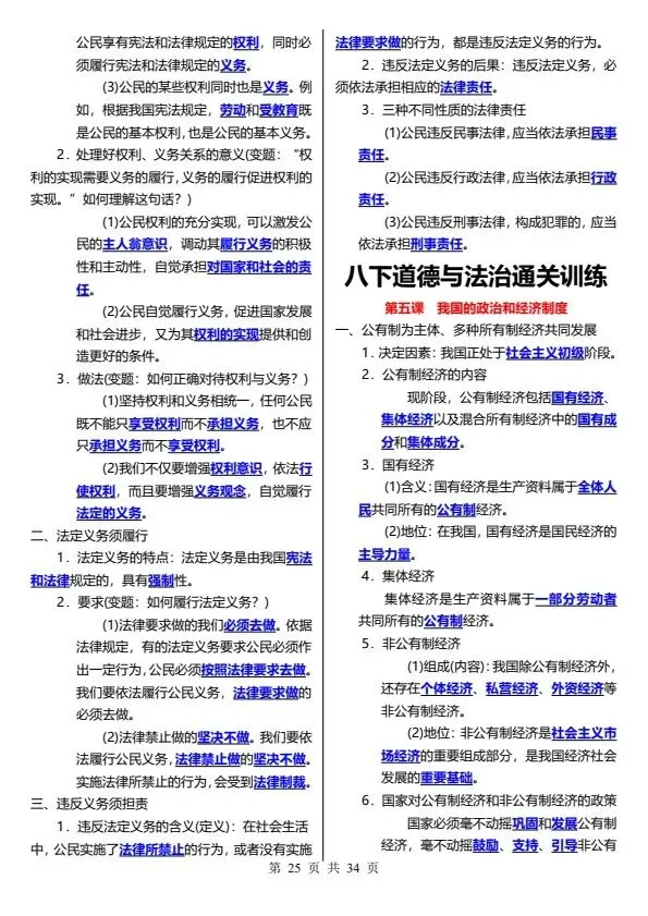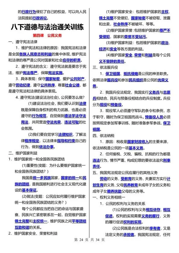 26春八下道德与法治通关训练(完整电子版可打印)