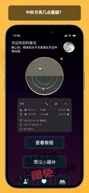 【阿鲁尼 月与日】一款月亮与太阳追踪工具,直观显示月相、日出日落时间,支持24小时制时钟和昼夜循环展示。内置教育工具与摄影辅助功能,支持主屏幕小组件快速查看。