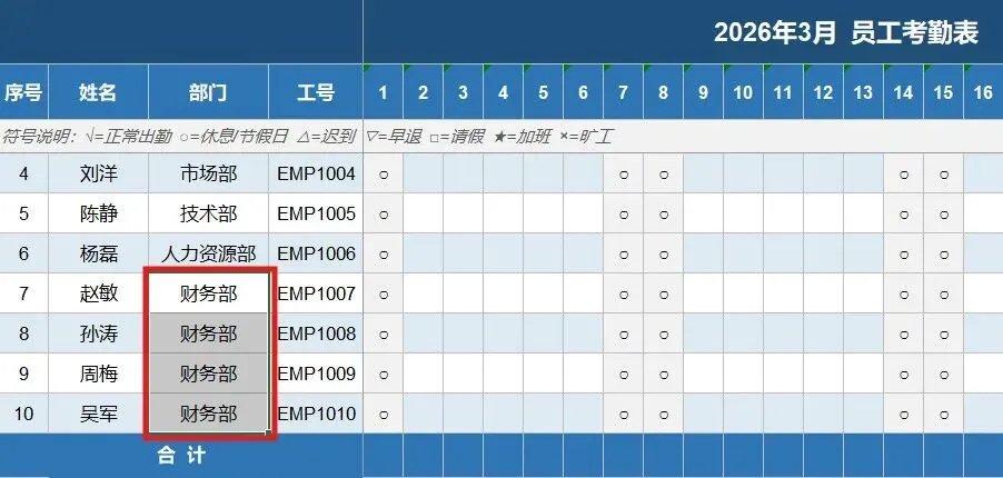 姓名、工号这类固定信息,经常需要向下填充,手动复制太蠢了。