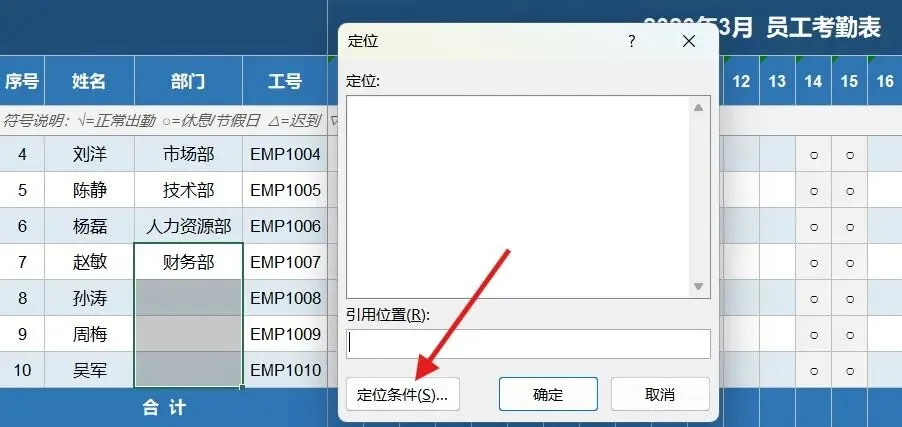 点左下角的**"定位条件"(WPS里是"查找"→"定位"→"空单元格"),然后选"空值"**,点确定。