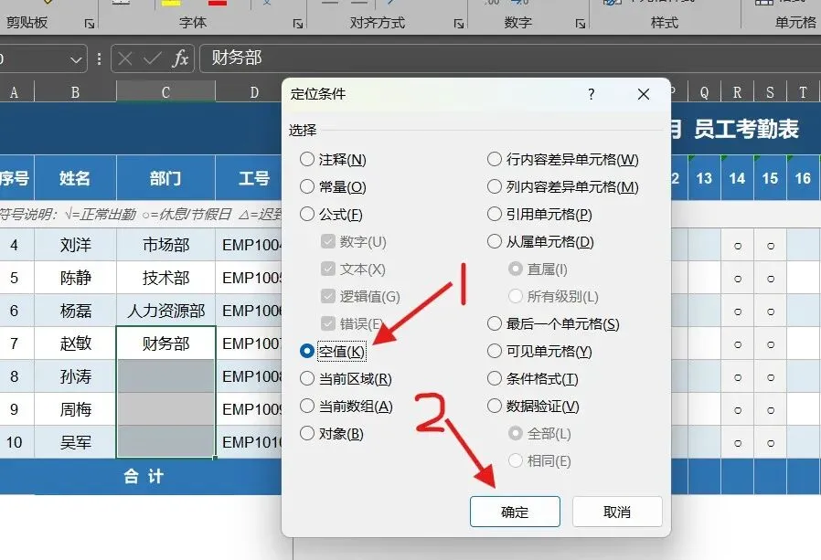 从系统导出的数据经常缺这少那,比如"部门"列只有第一行有内容。用这招,3秒补全。