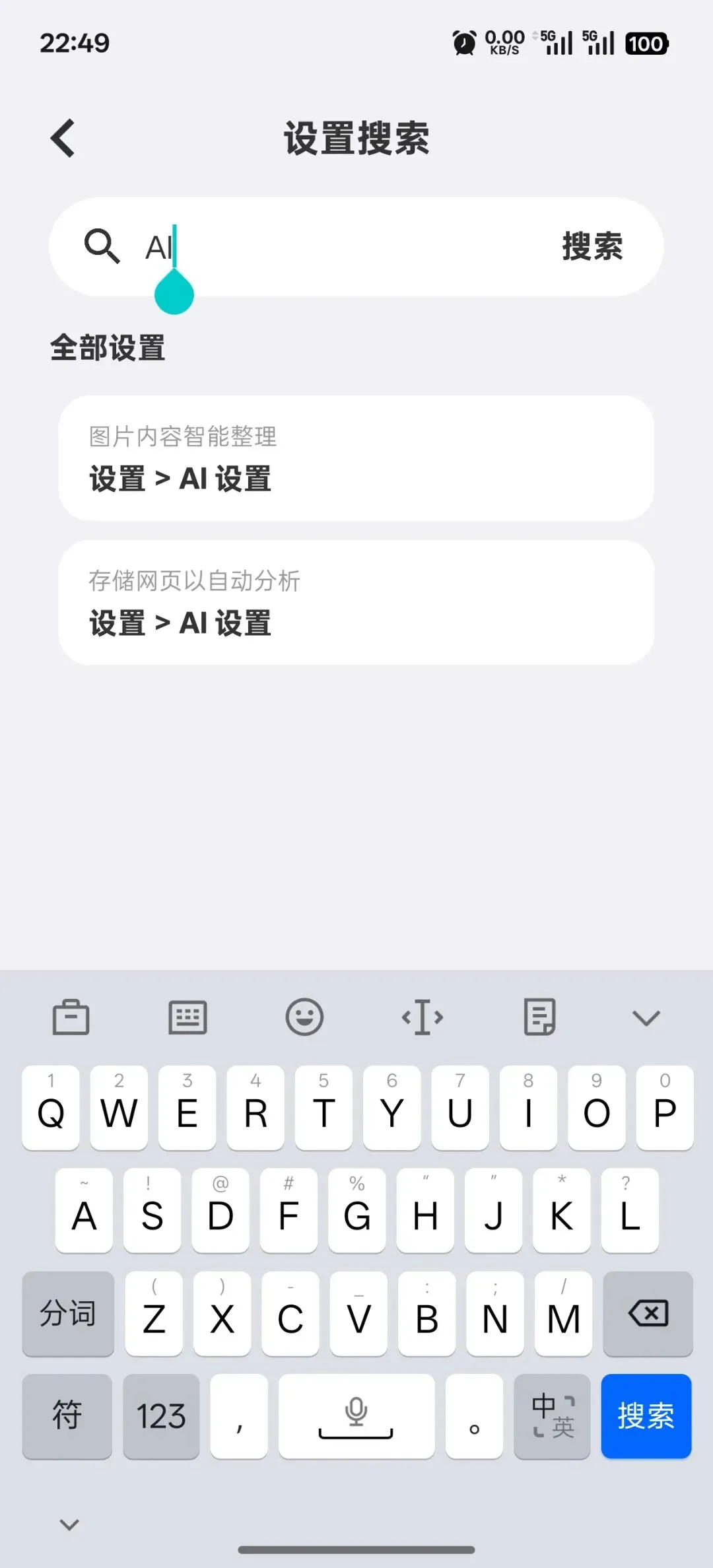 – 设置搜索新增支持搜索「AI 设置」功能项(体验路径:设置 > 搜索设置项)