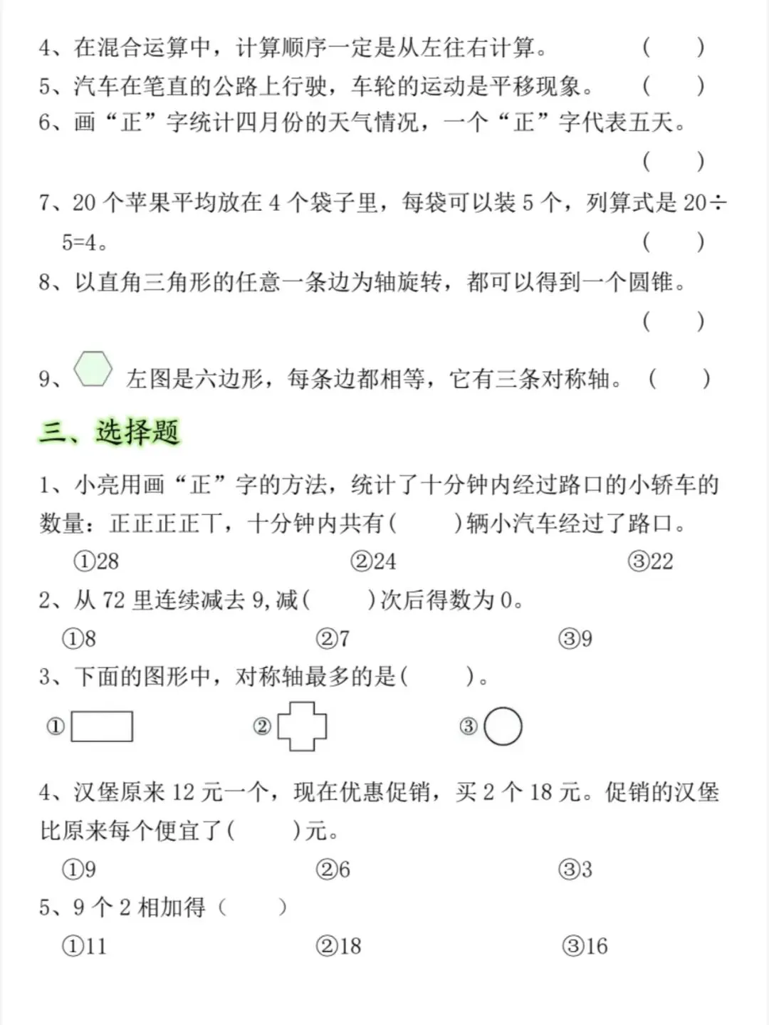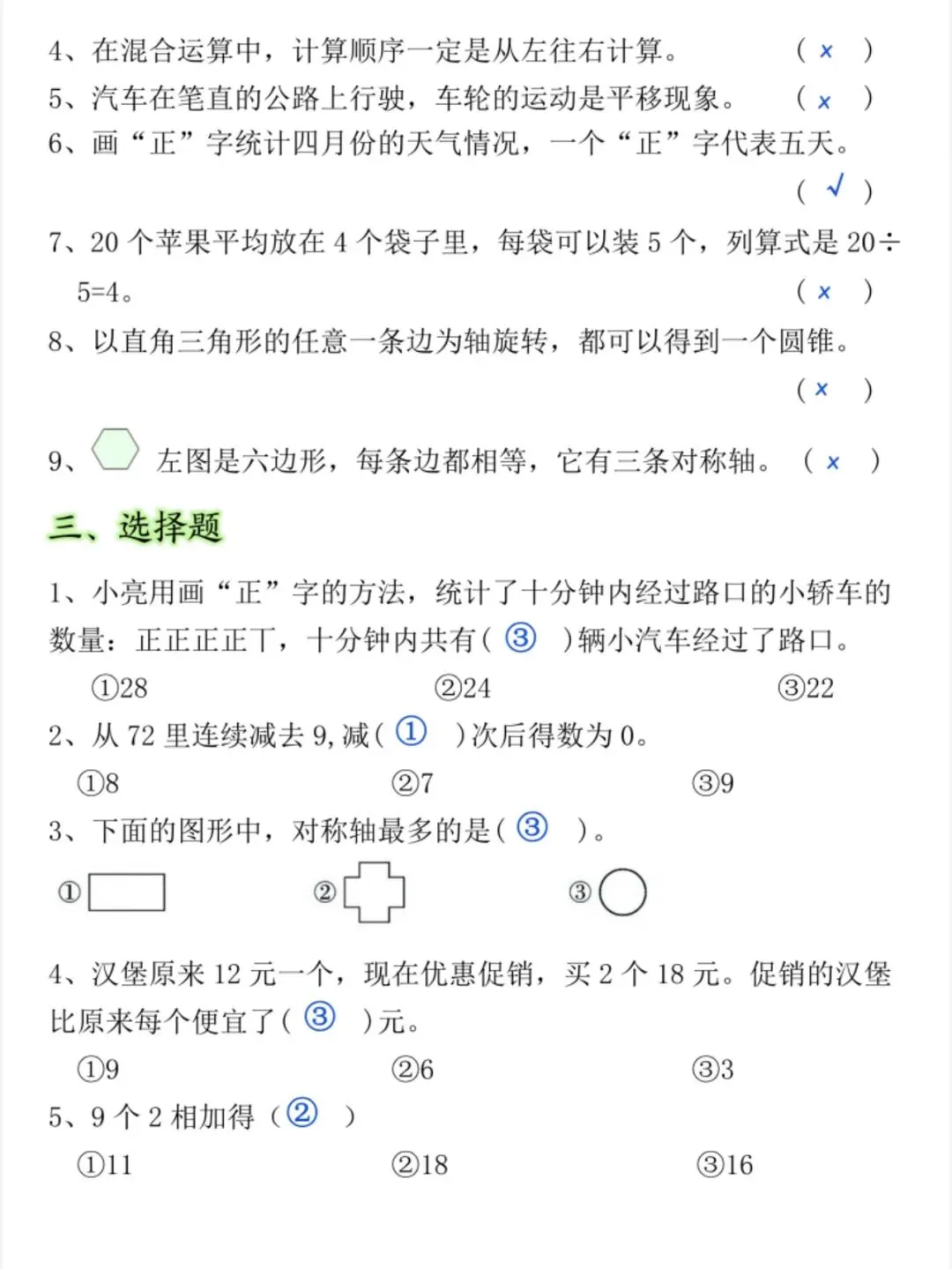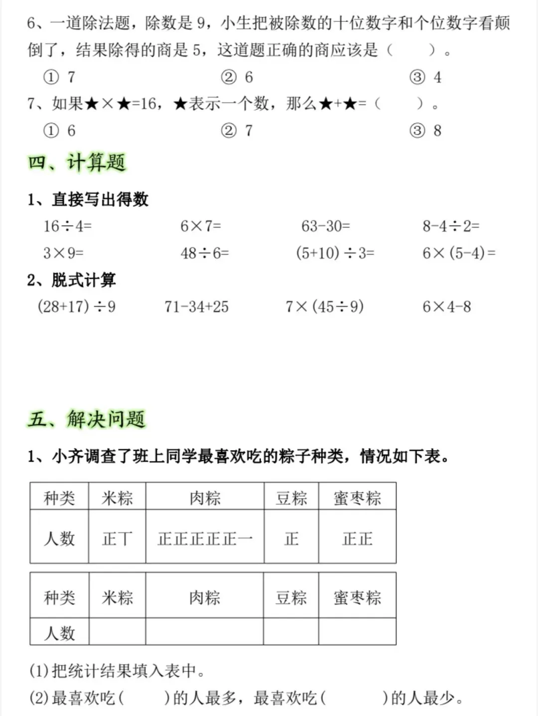 新版二年级下册数学期中常考易错题(电子版可打印)