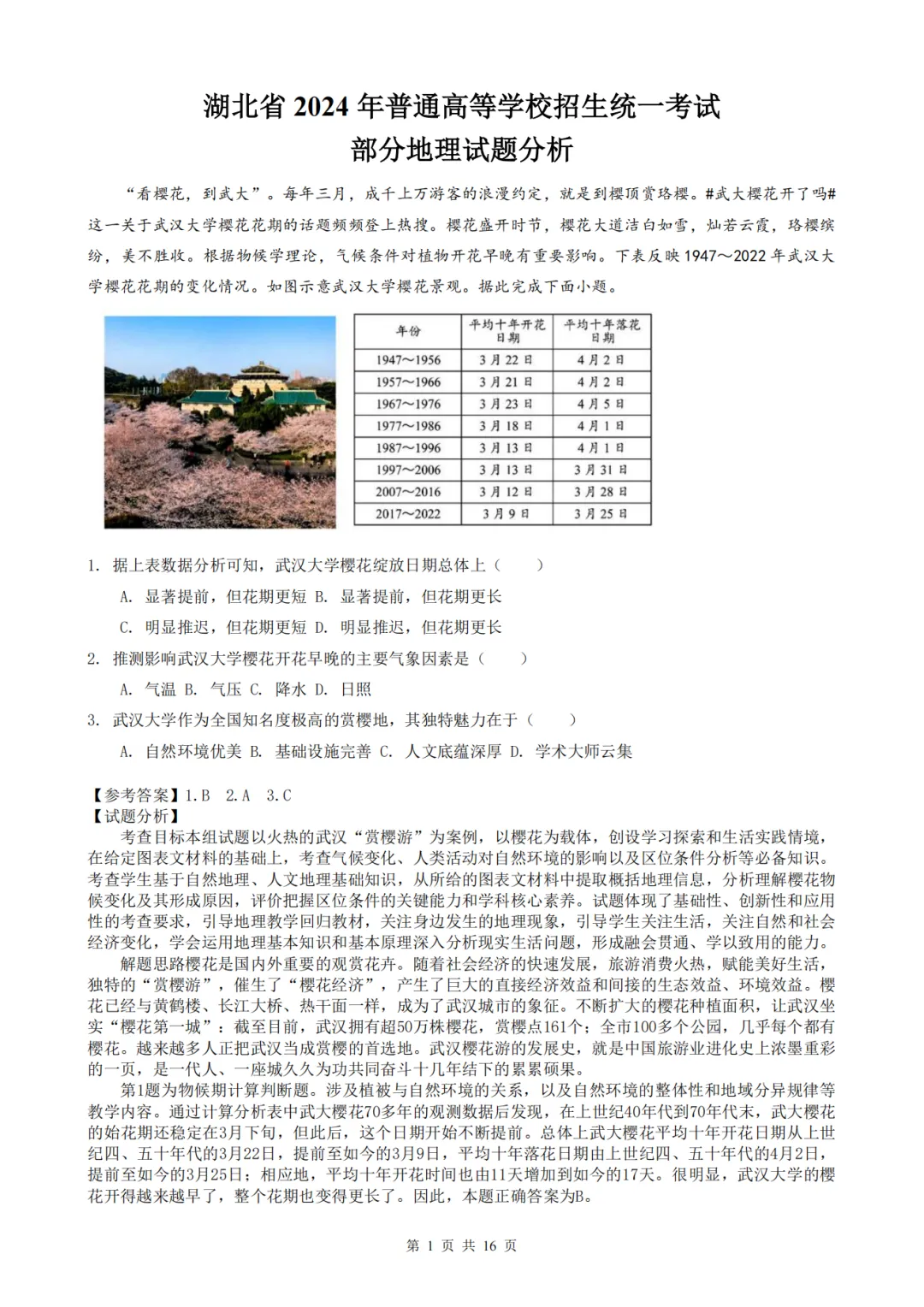 官方解读 | 2024湖北卷(PDF版)