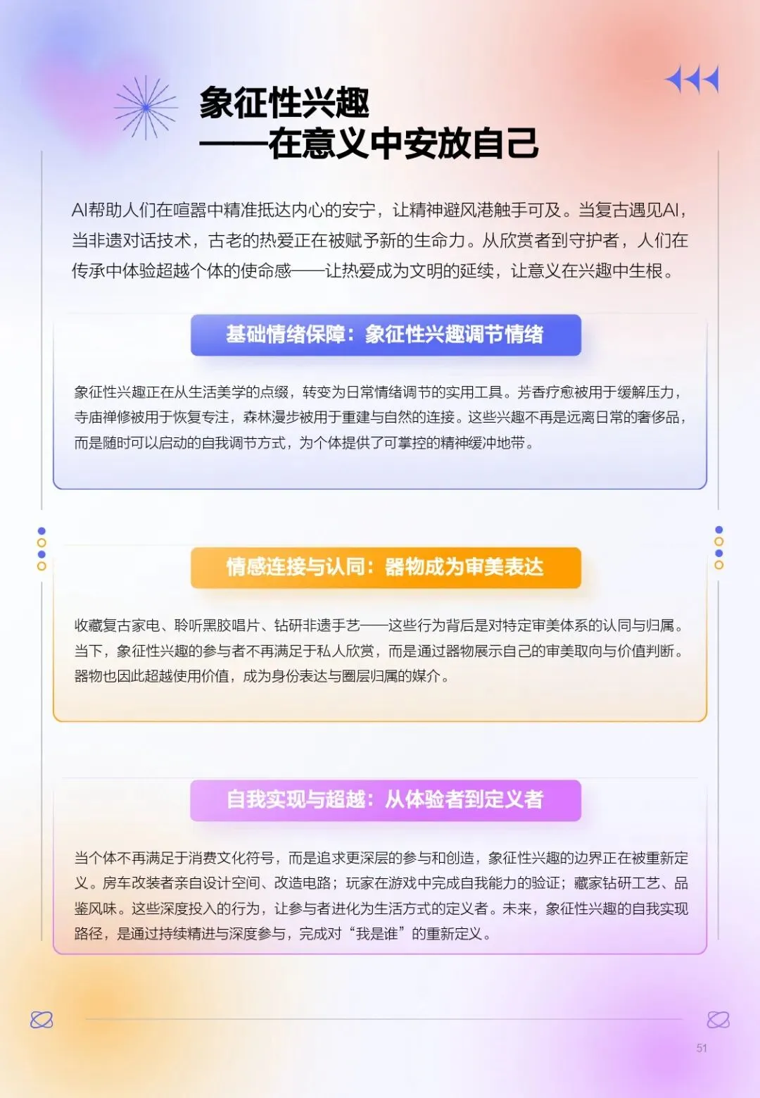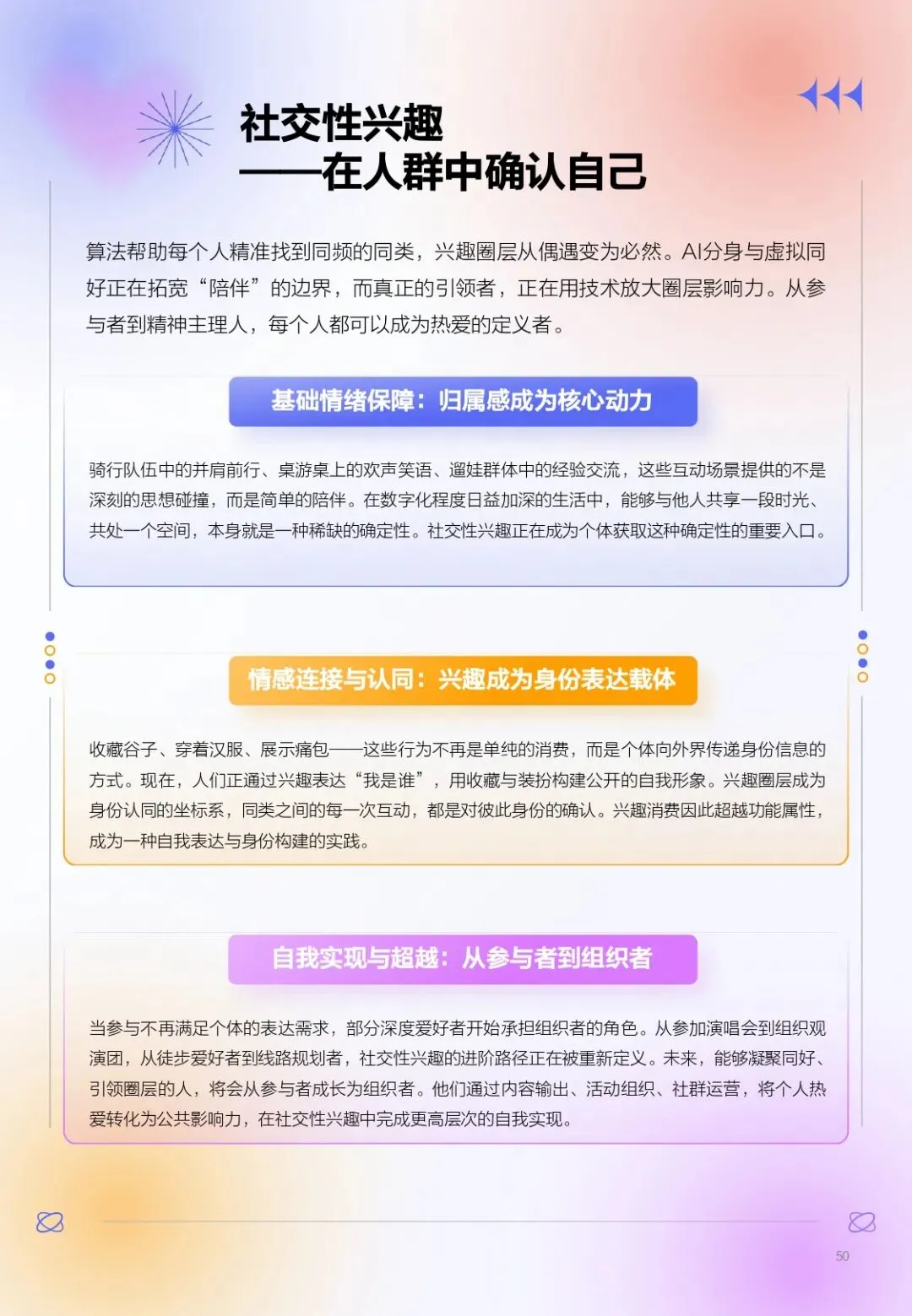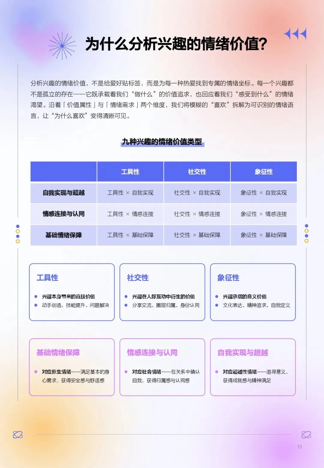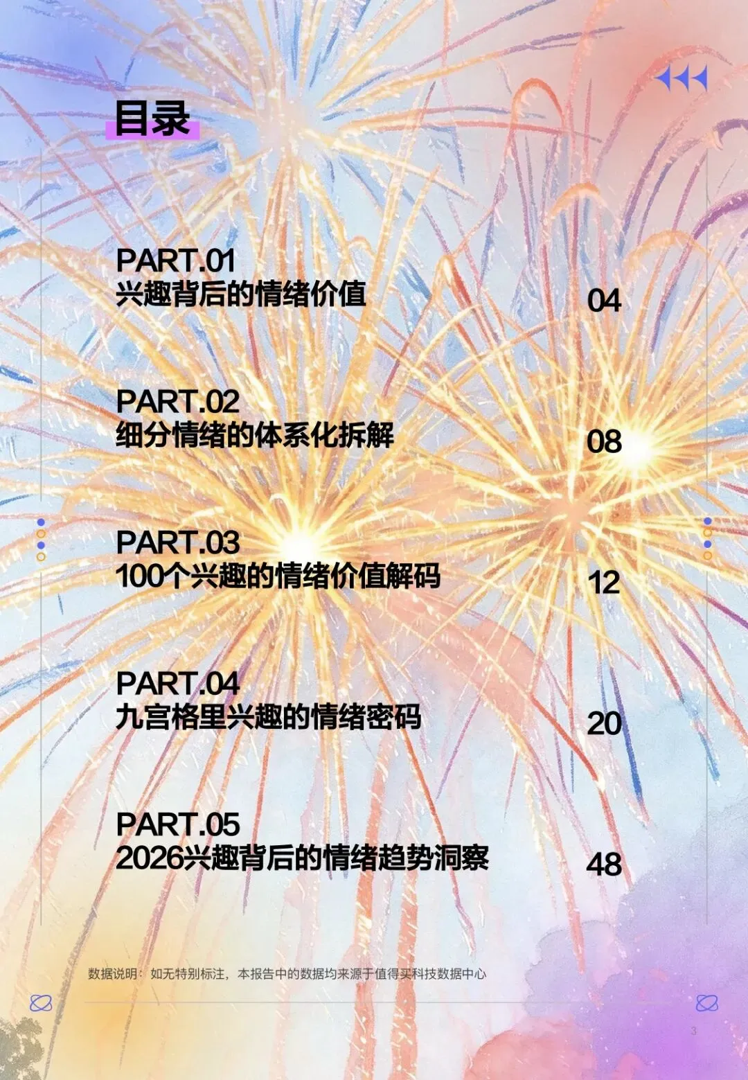 2026兴趣背后的情绪洞察报告(可下载) —— 核心内容◆ 部分展示 ◆ 资料下载 —— ▼ —— 核心内容◆ 部分展示 ◆ 资料下载—— ▼ 直接戳“阅读原文”下载 ▼ 往期热门推荐 清华大学《DeepSeek从入门到精通》 丨 清华大学《DeepSeek 如何赋能职场应用?》 丨 清华大学《普通人如何抓住DeepSeek红利》 丨 bilibili 十五大特色人群白皮书丨微信朋友圈高价值人群研究 丨 2024抖音电商年度报告 丨 新茶饮年度盘点 丨 2025消费趋势及增长策略洞察 丨 2024-2025节日营销趋势 丨 2025年视频号中老年用户消费洞察 丨 5个值得收藏的年度演讲PPT 丨 社交趋势 丨 抖音电商年度增长报告 丨 TikTok Shop 2024年度数据报告 丨 2024抖音热点年度数据 丨 周鸿祎:2025年赚钱7大风口 丨 小红书5900万质享人群白皮书 丨 疗愈经济 丨 2024电商消费趋势年度报告 丨 2024小红书「十大生活方式」洞察 丨 2025私域人才需求与薪酬 丨 年轻人10大兴趣社交 丨 消费者展望 丨 情绪经济 丨 微信内容种草 丨 大家电 丨 2024最全双11数据报告 丨 酒水 丨 汽车 丨 微短剧 丨 《中国统计年鉴2024》 丨 万亿银发经济 丨 小家电 丨 2024小红书趋势及品牌玩法拆解 丨 青年消费 丨 2023-2024年小红书全行业月报(325份)