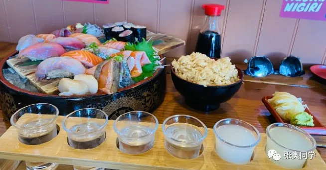 配着sake flight(6种清酒)和饭后的抹茶芝士蛋糕