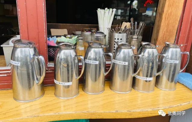 本地被好评为包容性高的咖啡馆有6种奶选择,全脂、脱脂、燕麦奶、杏仁奶、豆奶、half&half
