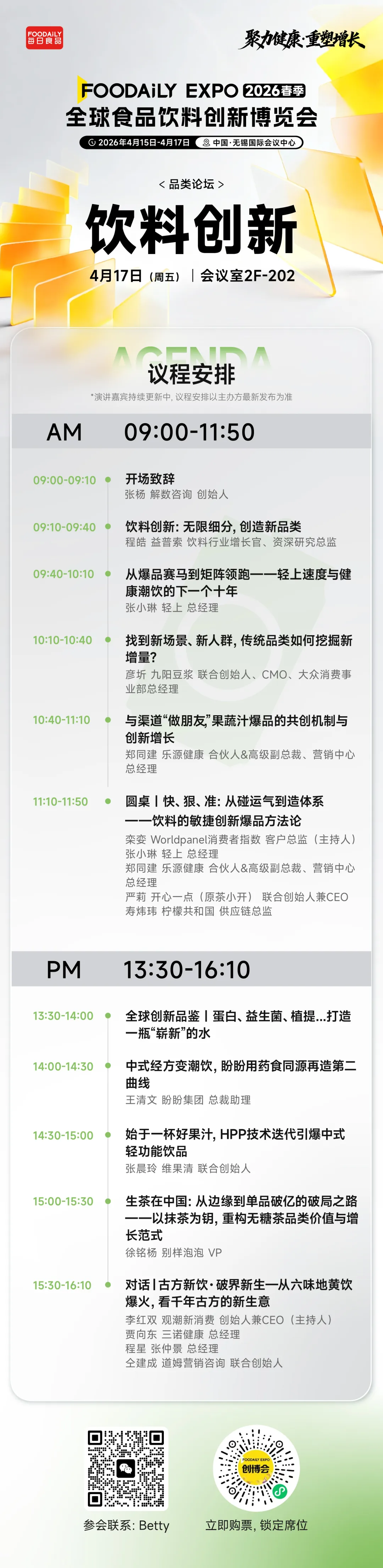 纯净版议程|2026 Foodaily创新博览会完整议程&嘉宾,176位重磅嘉宾齐聚无锡!