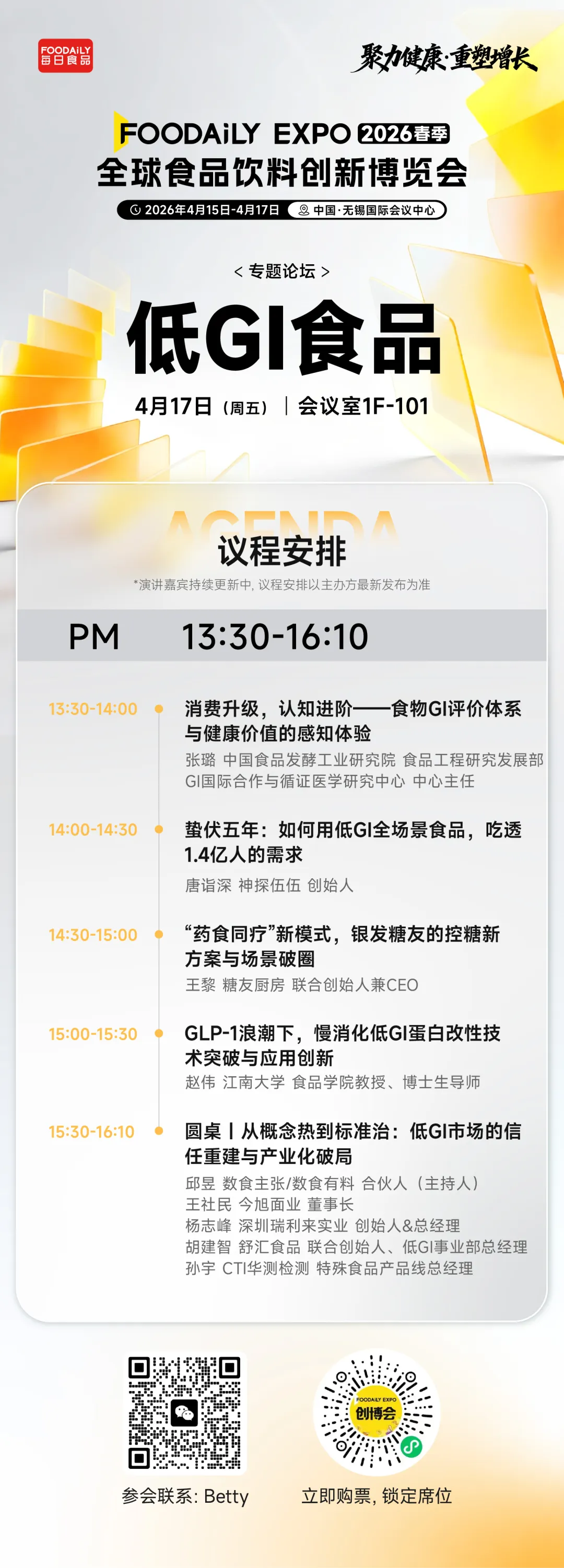 4月17日 低GI食品 主题论坛|1F-101