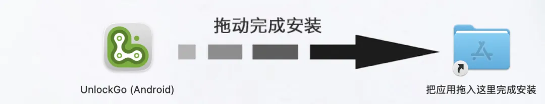 打开软件包,拖动【UnlockGo】软件完成安装。