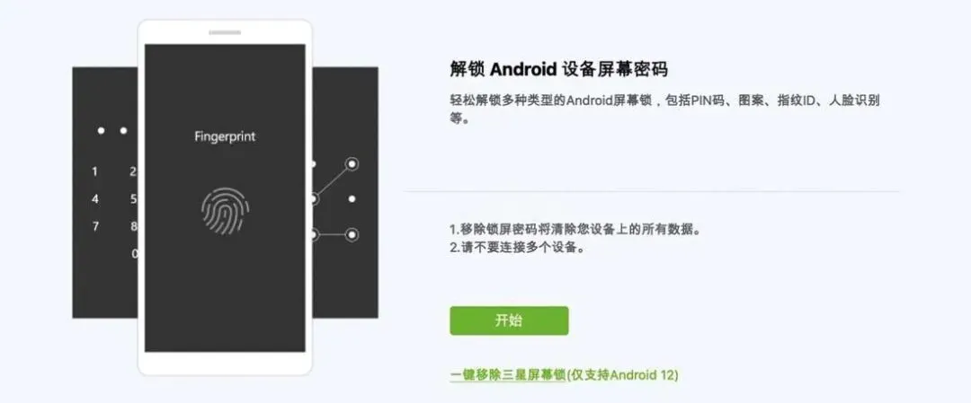 UnlockGo支持一键智能安卓锁屏类型,包括图案锁、数字密码和复杂密码。也支持移除多种锁定形式,包括图案锁、PIN码、密码锁以及部分生物识别限制等。