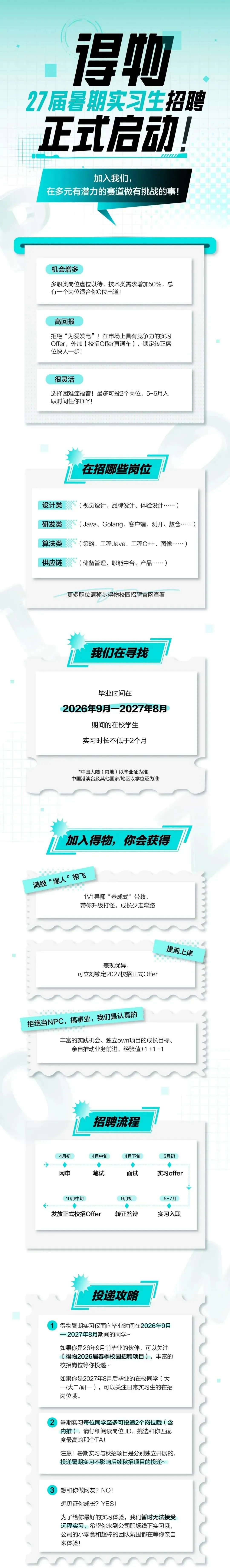 【暑期实习】得物app|超多回报!提前转正快人一步!