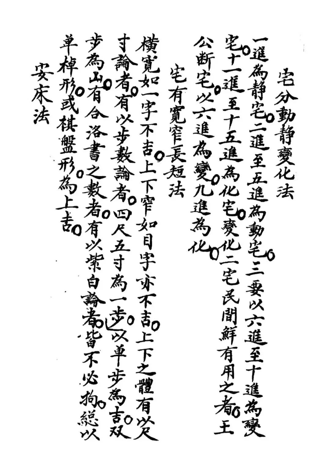 宅分动静变化法,宅有宽窄长短法,安床法,坎宅皂之方位,宅有巧番八卦法,张心揆祖宅(坎宅),不吉之坎宅赵氏祖宅(坎宅),王庄坎宅,黎封坎宅,刘毛之宅,河北河内县史家坎宅,