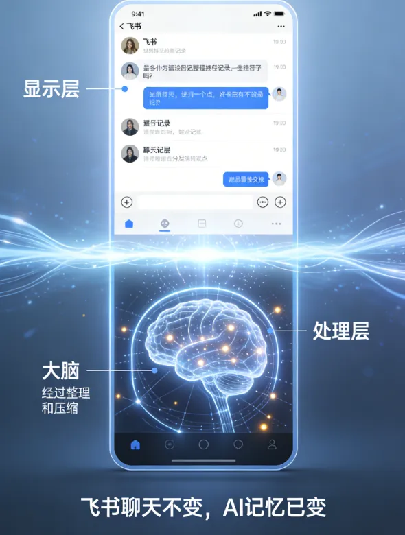飞书上的记录是“显示层”,AI的记忆是“处理层”。你用指令,改变的是AI脑子里的“记忆容器”,不是飞书屏幕上的文字。