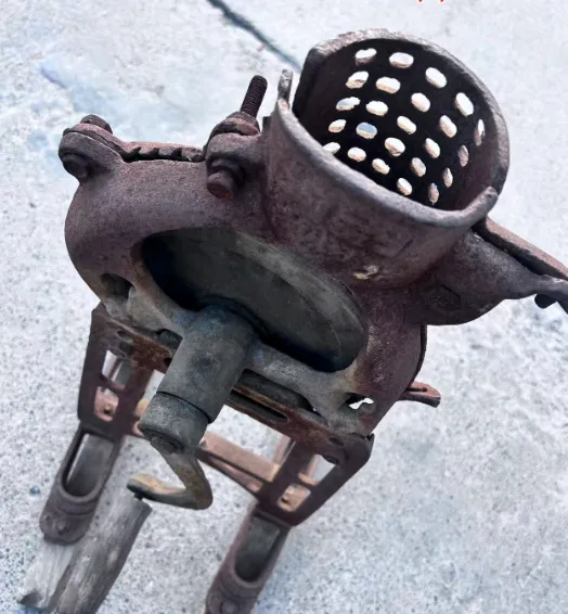 图里这个铁杆子叫玉米脱粒杠,把玉米棒子放进圆口,一抬手柄,把谷粒杠出来,儿时家里晚上干这个活,院里笑声和咔咔声扎堆,现在全是机器干,操作都换了。