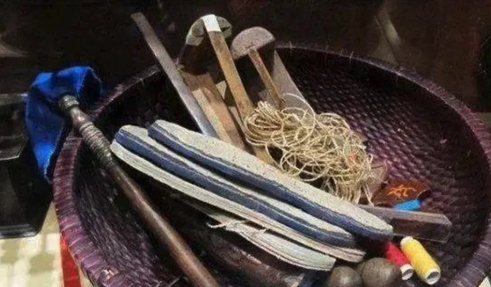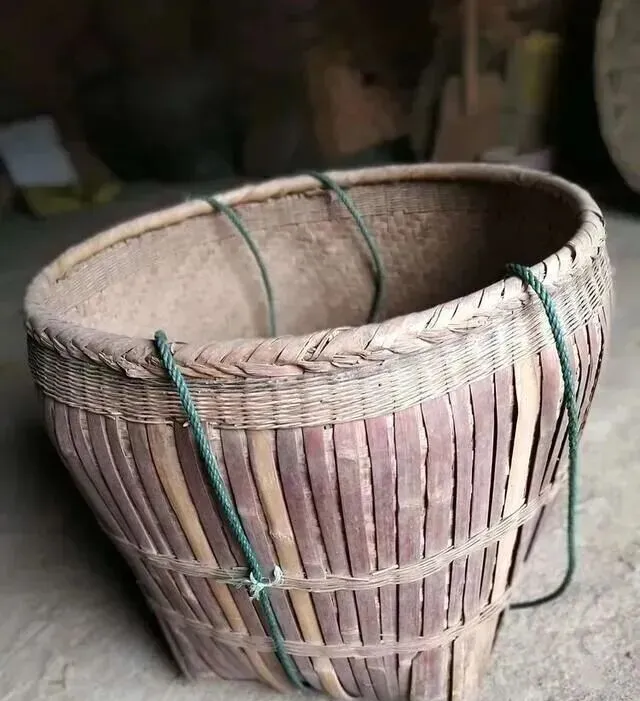 右边这套东西,一个是簸箕,一个是粮篮,打场时候用来簸麦簸谷的,妈俩手一端,往上轻轻一抛,风一吹,糠皮就飞远了,沉甸甸的粮食滑下来,谁家能攒下一篮子细粮,心里都踏实,屋子角落总留着,哪怕不常用也舍不得扔。