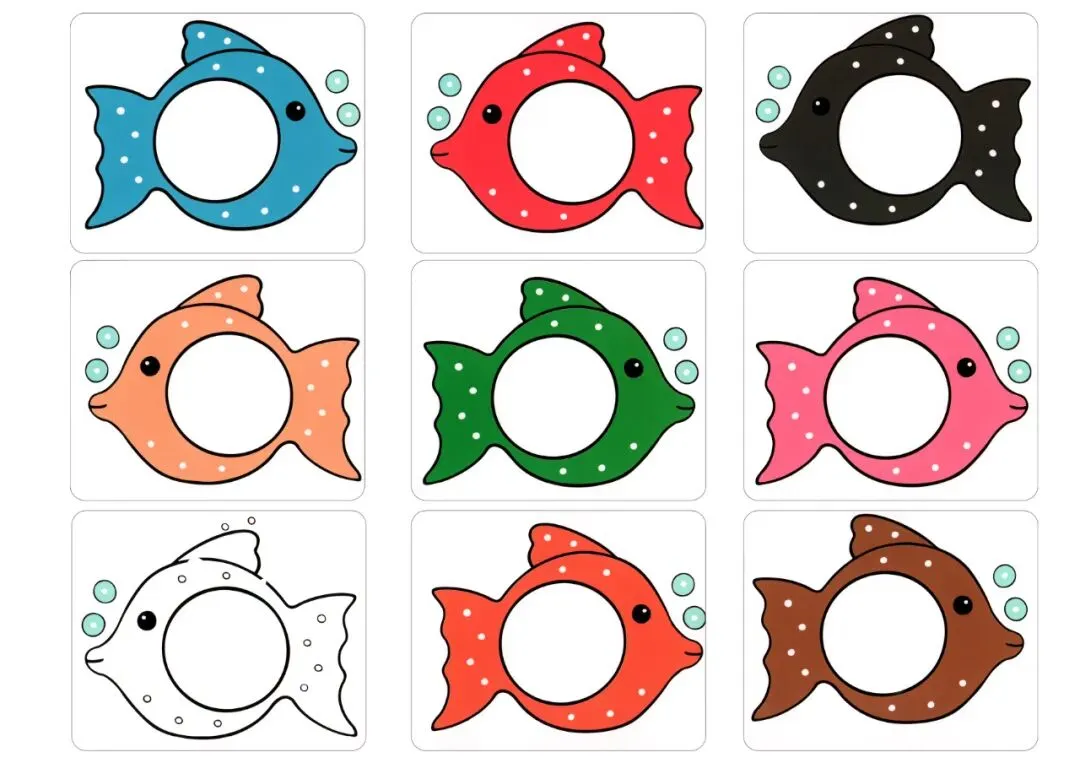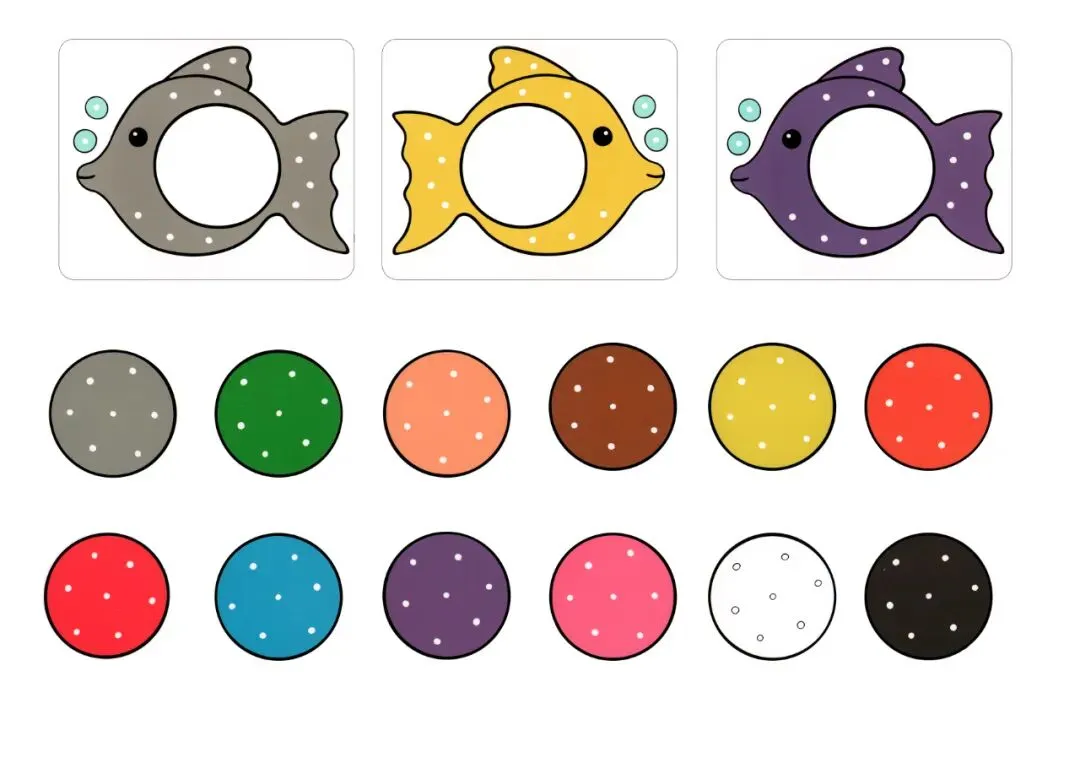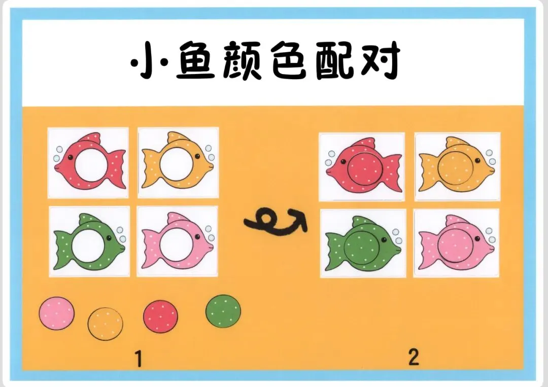 幼儿园益智区《小鱼颜色配对》自制玩教具可打印