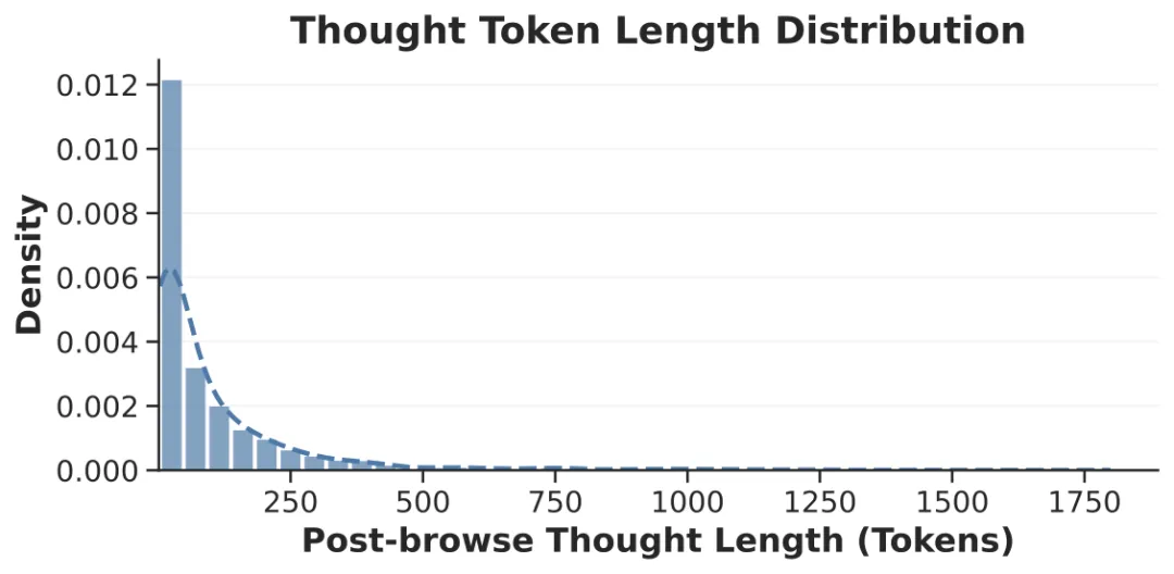 图3:浏览文档后,智能体“思考”文本的令牌长度分布。更长的思考往往意味着文档引发了更深度的信息处理和整合。