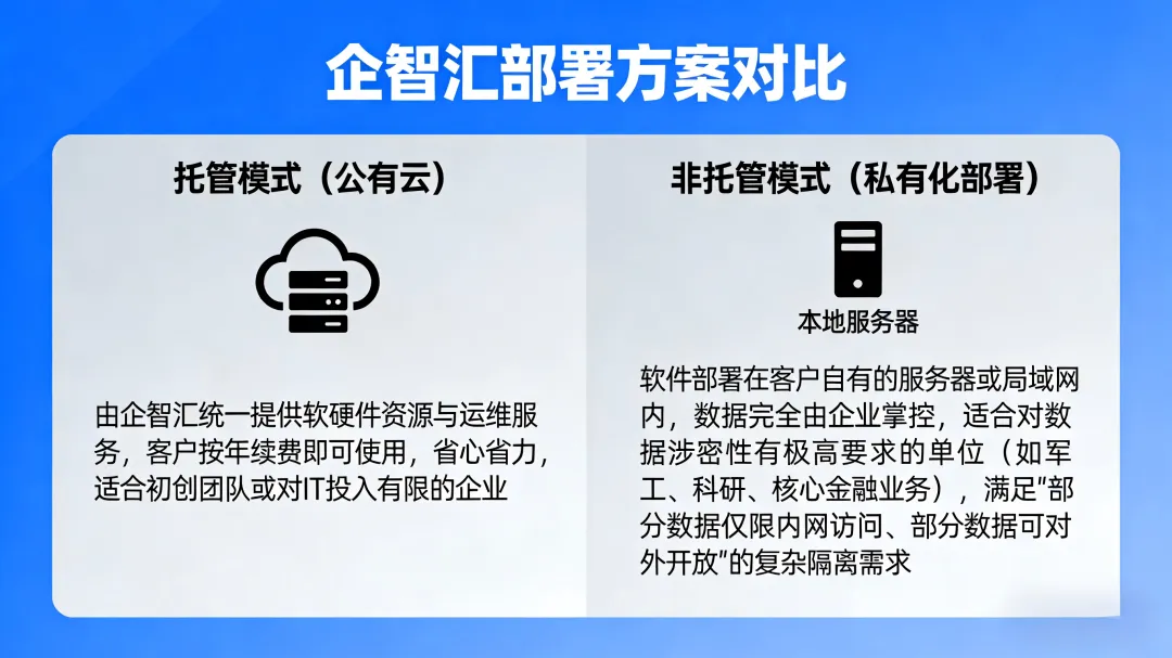 企智汇提供两种灵活的部署方案以适应不同企业的安全策略: