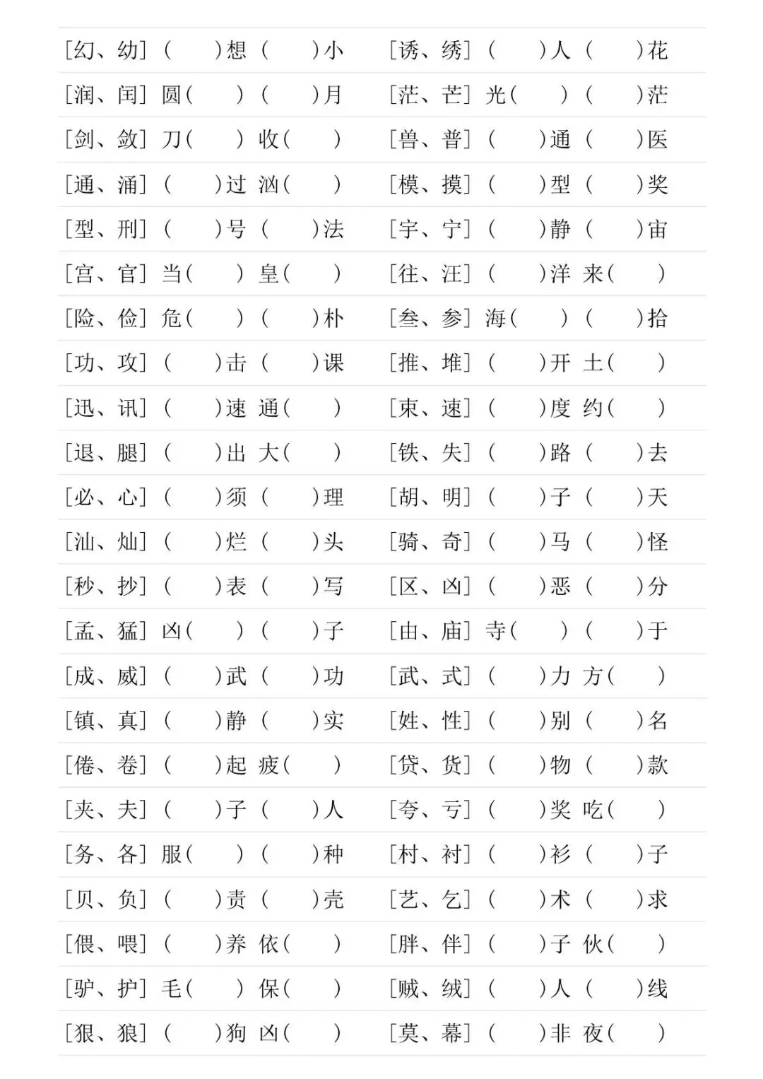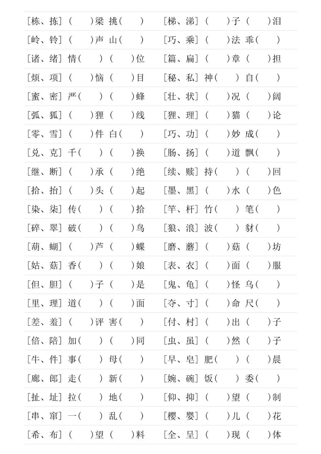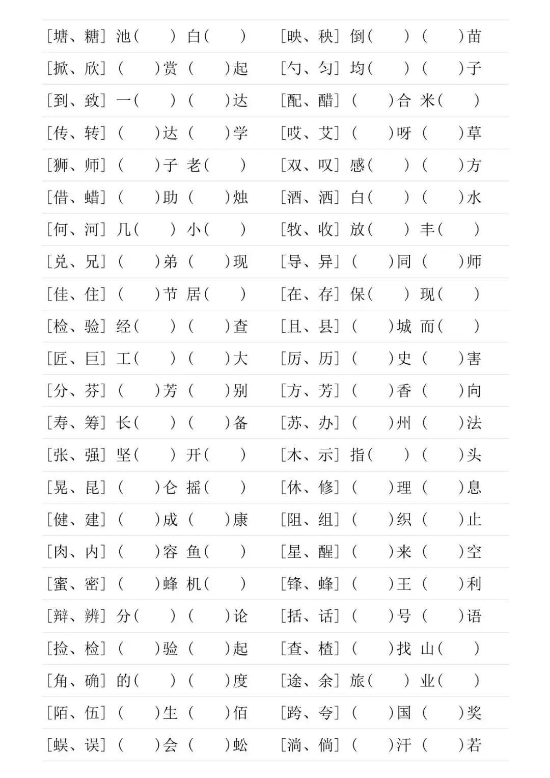 大家好,今天给大家分享的是三年级下册语文形近字专项练习【可下载可打印】,关注我,每天持续分享更多的优质学习资料。