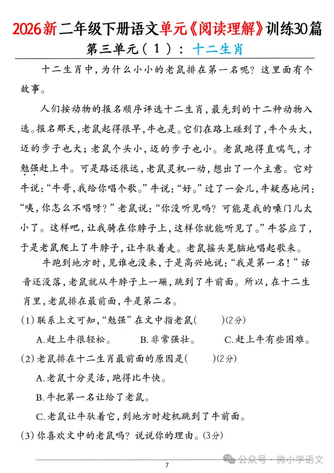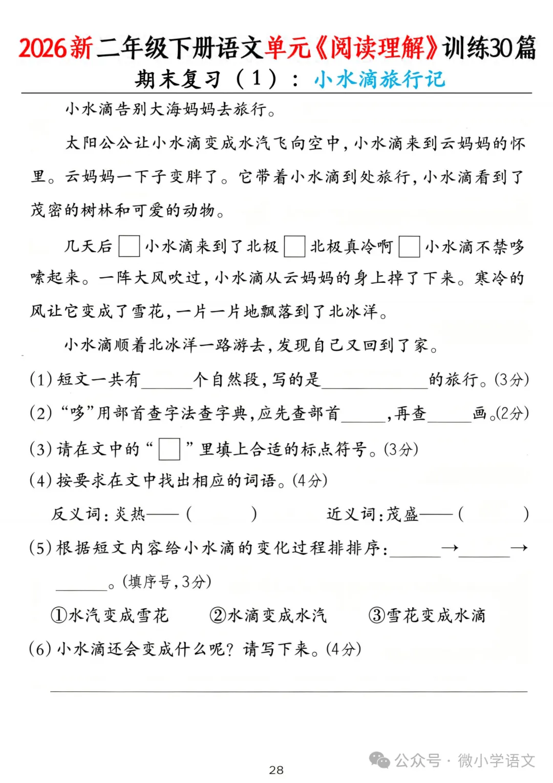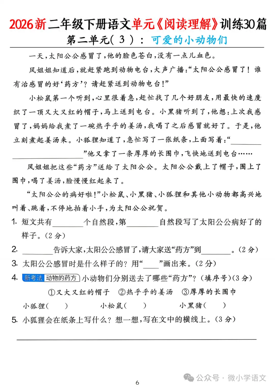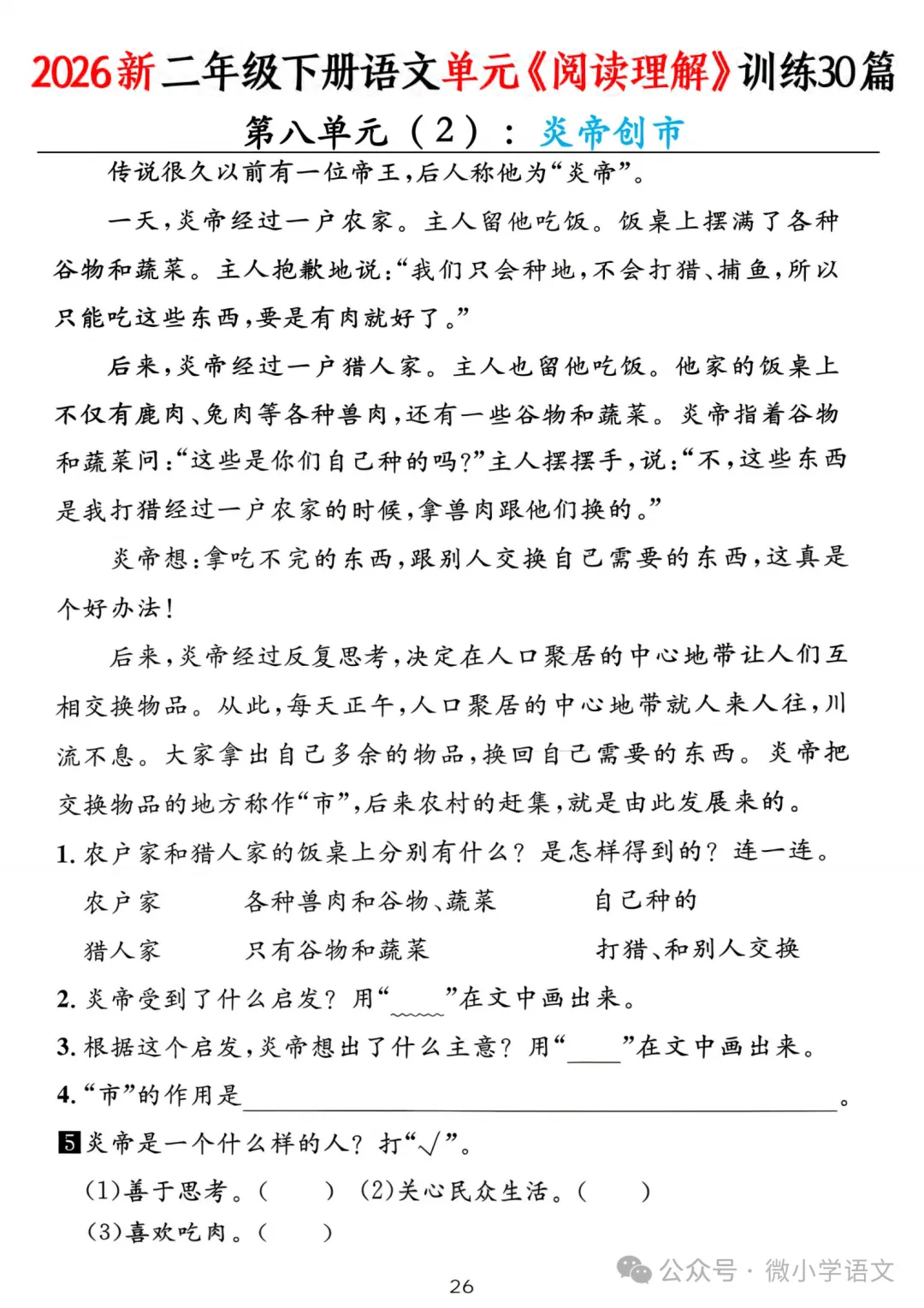 本微信公众账号分享的资源均通过网络等公共合法渠道获得,仅供试用!版权属于原出版机构或影像公司,本资源为电子载体,传播分享仅限于家庭使用与交流心得、参考和辅助购买决策,不得以任何理由在商业行为中使用,若喜欢此资源,建议购买实体产品。文章中的视频及图片均来自网络,版权归原作者或原出版社所有。如有侵权,请及时联系删除。#二年级语文下册单元阅读理解训练