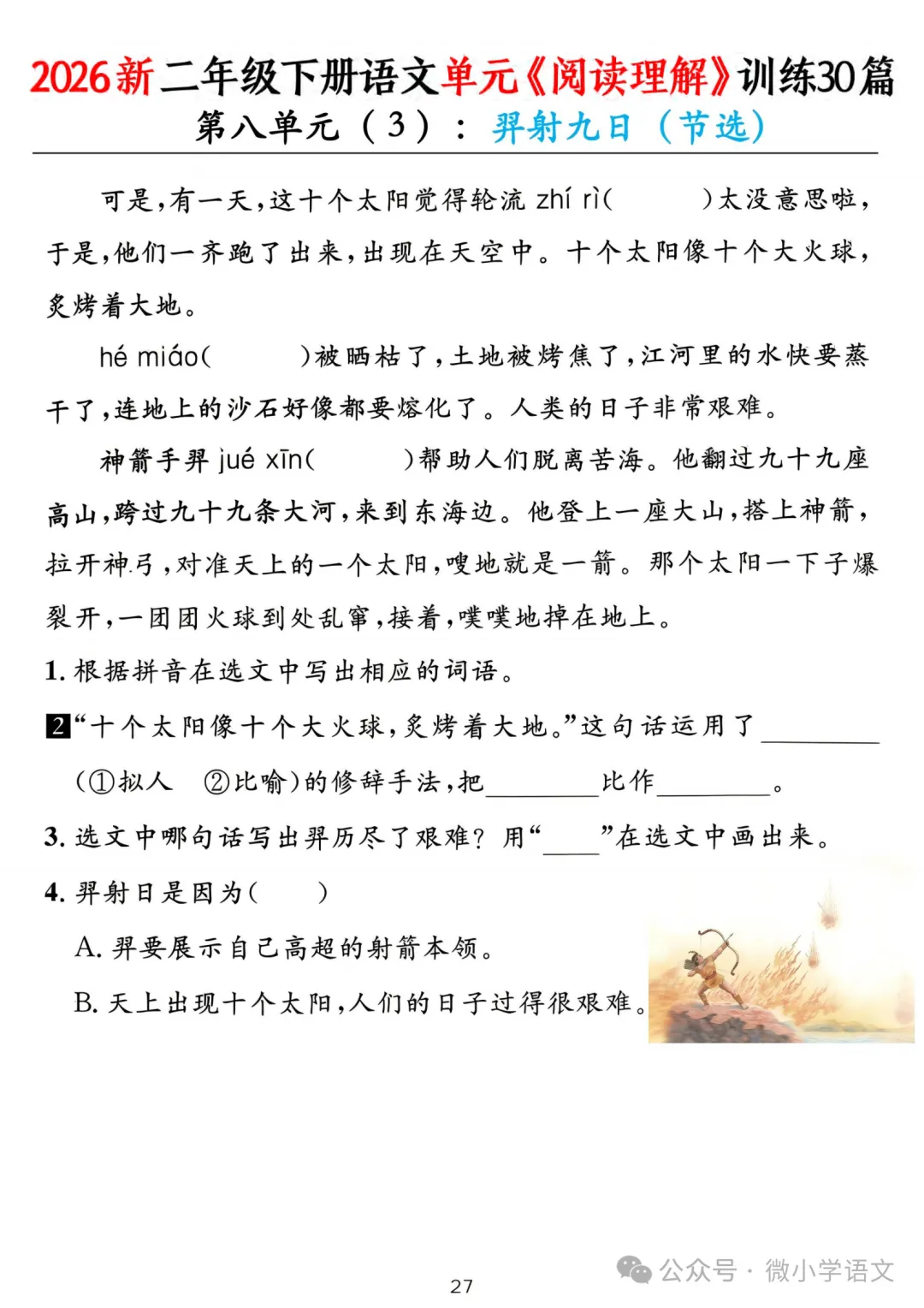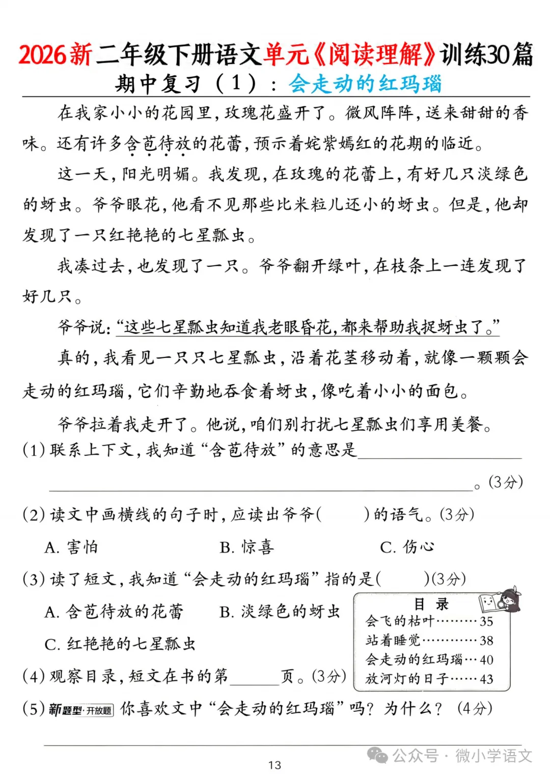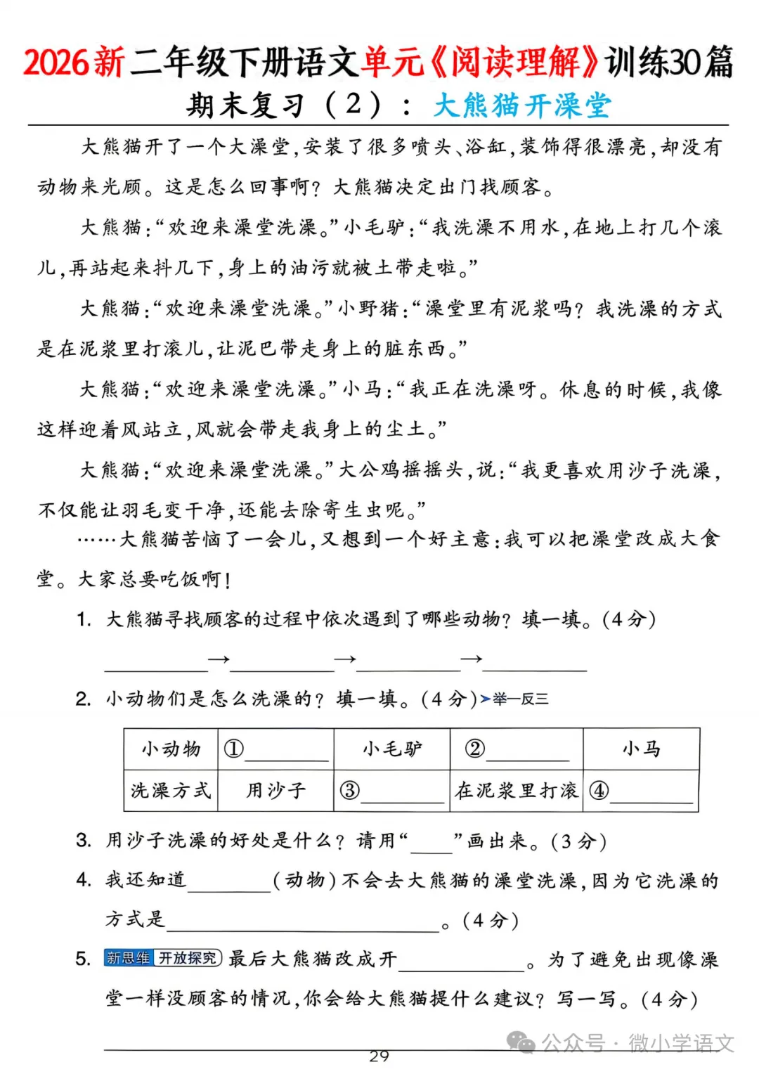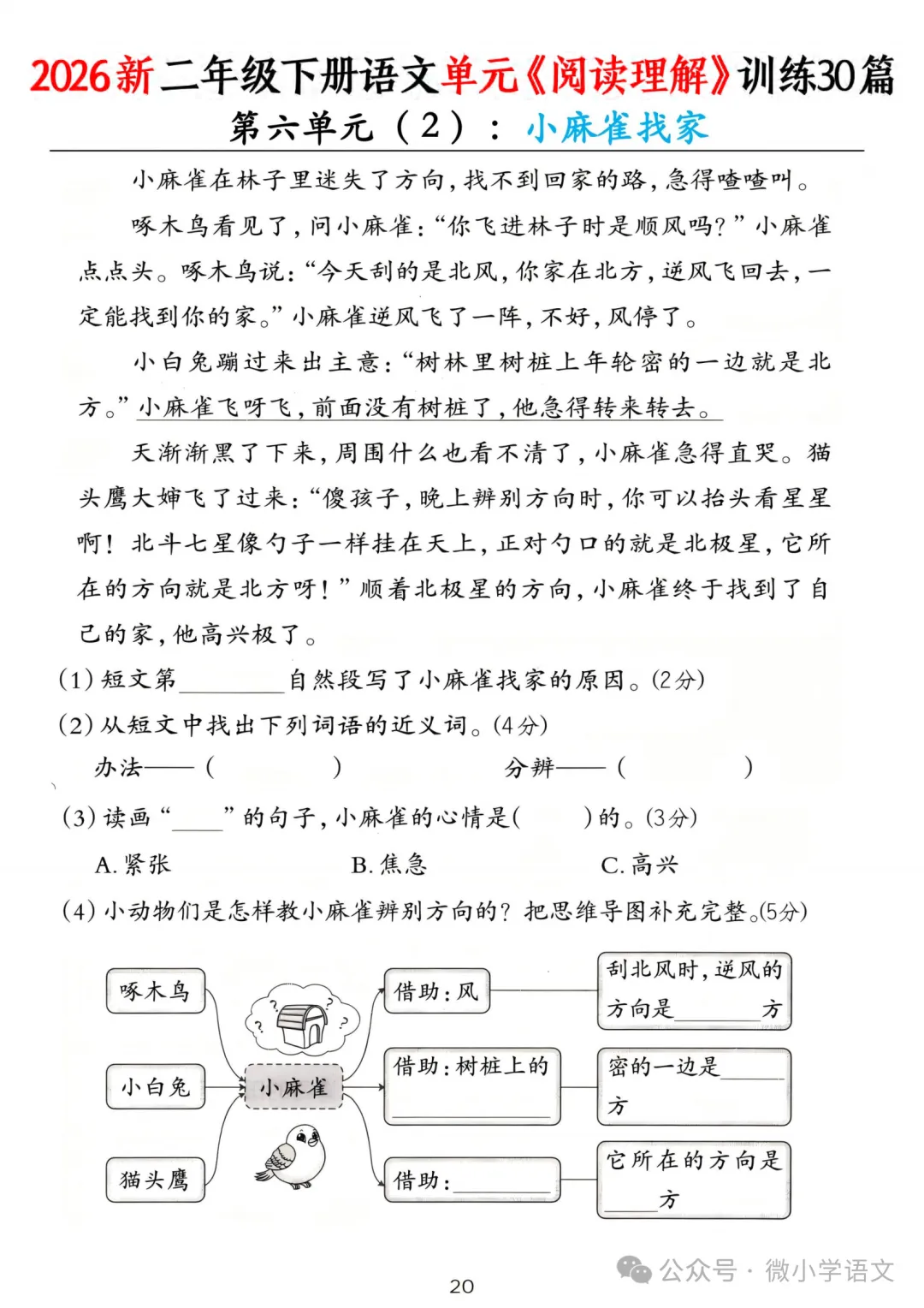 本微信公众账号分享的资源均通过网络等公共合法渠道获得,仅供试用!版权属于原出版机构或影像公司,本资源为电子载体,传播分享仅限于家庭使用与交流心得、参考和辅助购买决策,不得以任何理由在商业行为中使用,若喜欢此资源,建议购买实体产品。文章中的视频及图片均来自网络,版权归原作者或原出版社所有。如有侵权,请及时联系删除。#二年级语文下册单元阅读理解训练