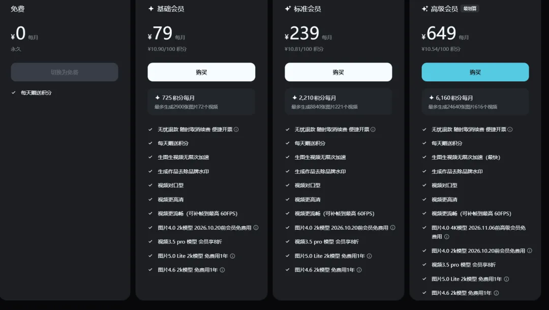 缺点:性能存在波动,生成效果欠缺。基础功能免费,高性能需要会员。