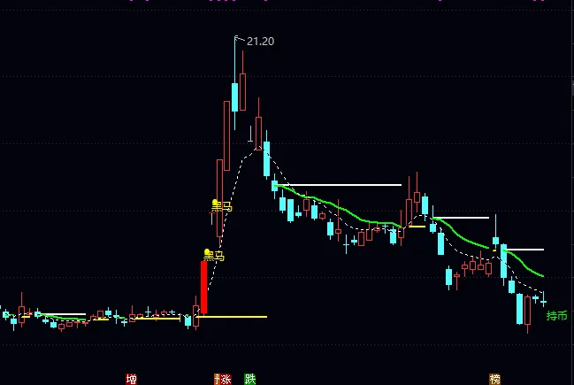 DRAWTEXT(持币线>0 AND ISLASTBAR,L*0.98,’ 持币’),COLORGREEN;