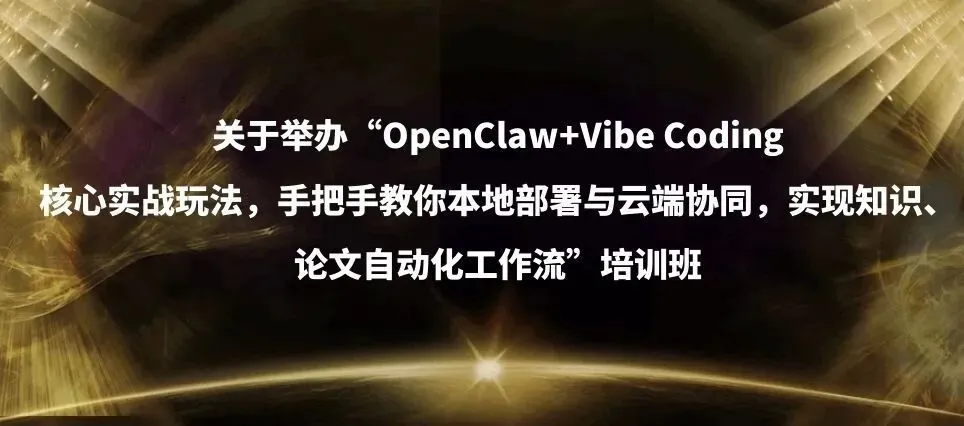 🌟 课程一:关于举办“OpenClaw+Vibe Coding核心实战玩法,手把手教你本地部署与云端协同,实现知识、论文自动化工作流”培训班