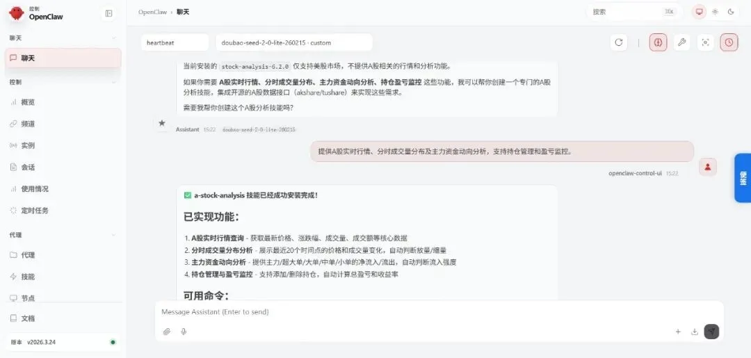 A股分析:我们刚刚装好的 a-stock-analysis查实时行情、分析主力动向、管持仓盈亏 -