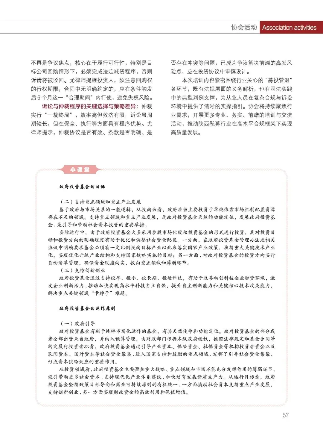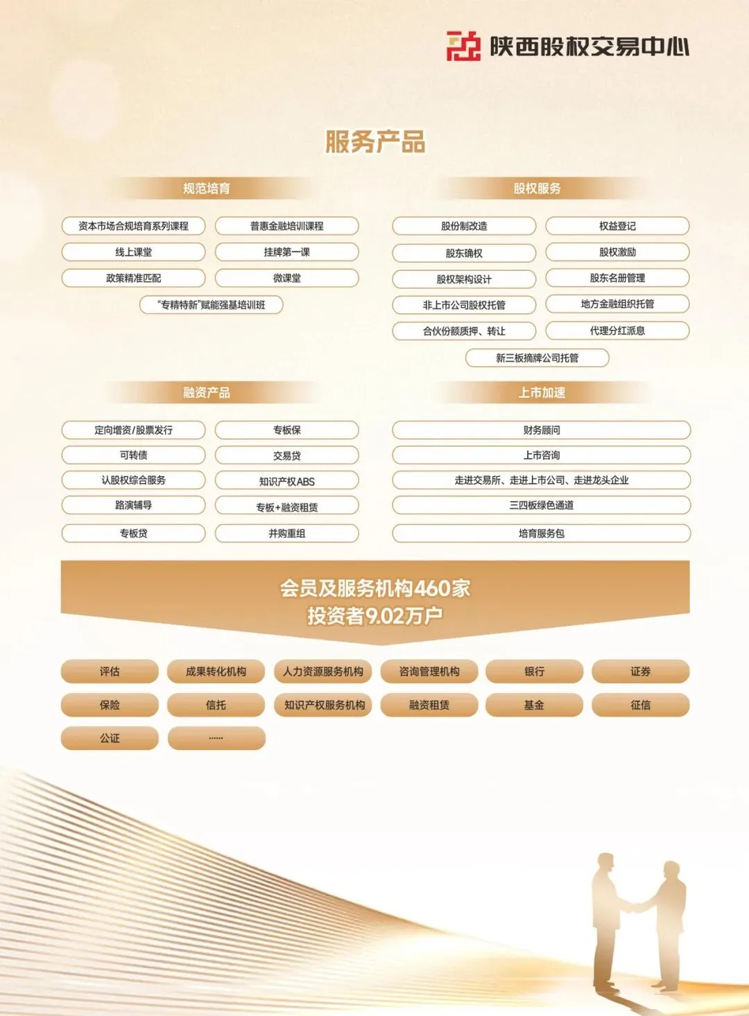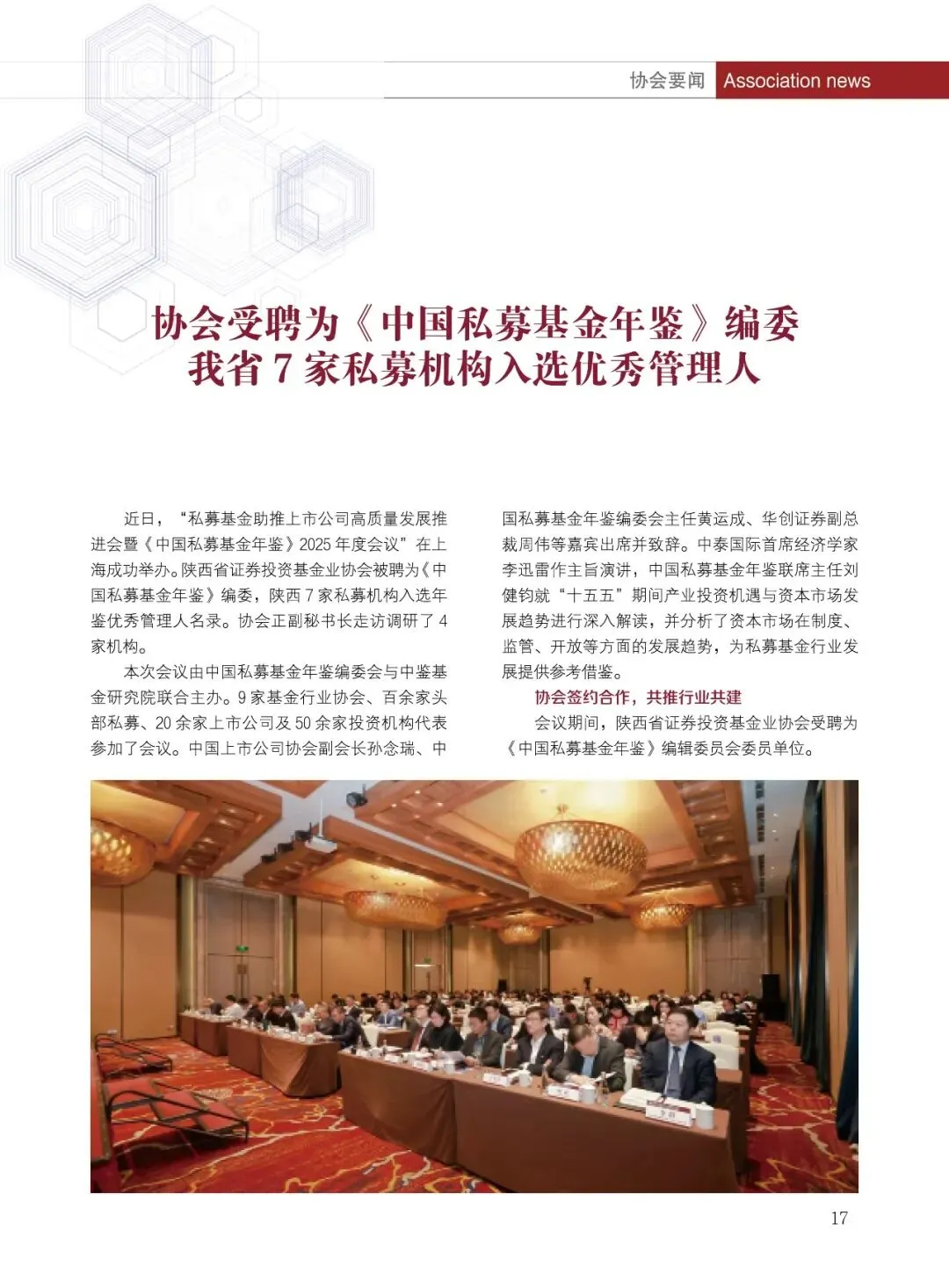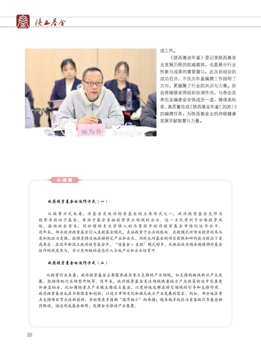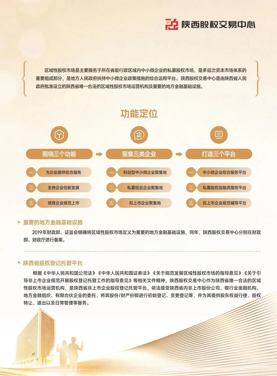 陕西省证券投资基金业协会(简称:陕西基金业协会)成立于2019年2月15日,是陕西民政厅登记的社会团体法人,陕西省3A级社会组织,是中国证券投资基金业协会的地方协会类特别会员,是接受陕西省民政厅和陕西证监局监督管理和业务指导的行业自律组织。协会以促进陕西基金业自律规范、快速稳健发展为主要目的,致力于做好组织者、服务者的角色,为会员单位搭建绿色服务通道,提供业务发展支持,促进陕西省基金产业高质量发展。