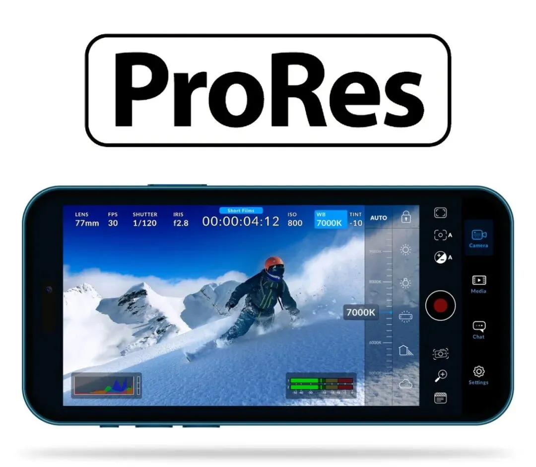 2021 年 10 月,iPhone 13 Pro和iPhone 13 Pro Max正式支持 ProRes视频录制(1080 30p)。iPhone 14 Pro和iPhone 14 Pro Max支持4K分辨率 ProRes 视频录制,iPhone 17 Pro和iPhone 17 Pro Max进一步加入了ProRes RAW 录制格式。