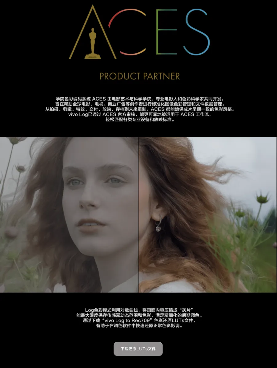 vivo Log已适配ACES专业后期流程,点击下方链接,或文末 阅读原文 都可以下载vivo官方提供的还原Lut、多款创意Lut和ACES流程指导文件——