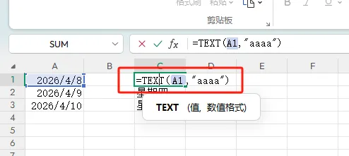 解读😎:A1填需要判断的日期(比如“2026/04/08”),输入公式后,直接返回“星期三、星期四”这样的完整星期名称,下拉填充即可~不用手动转换,也不用对照日历核对哦🥤。