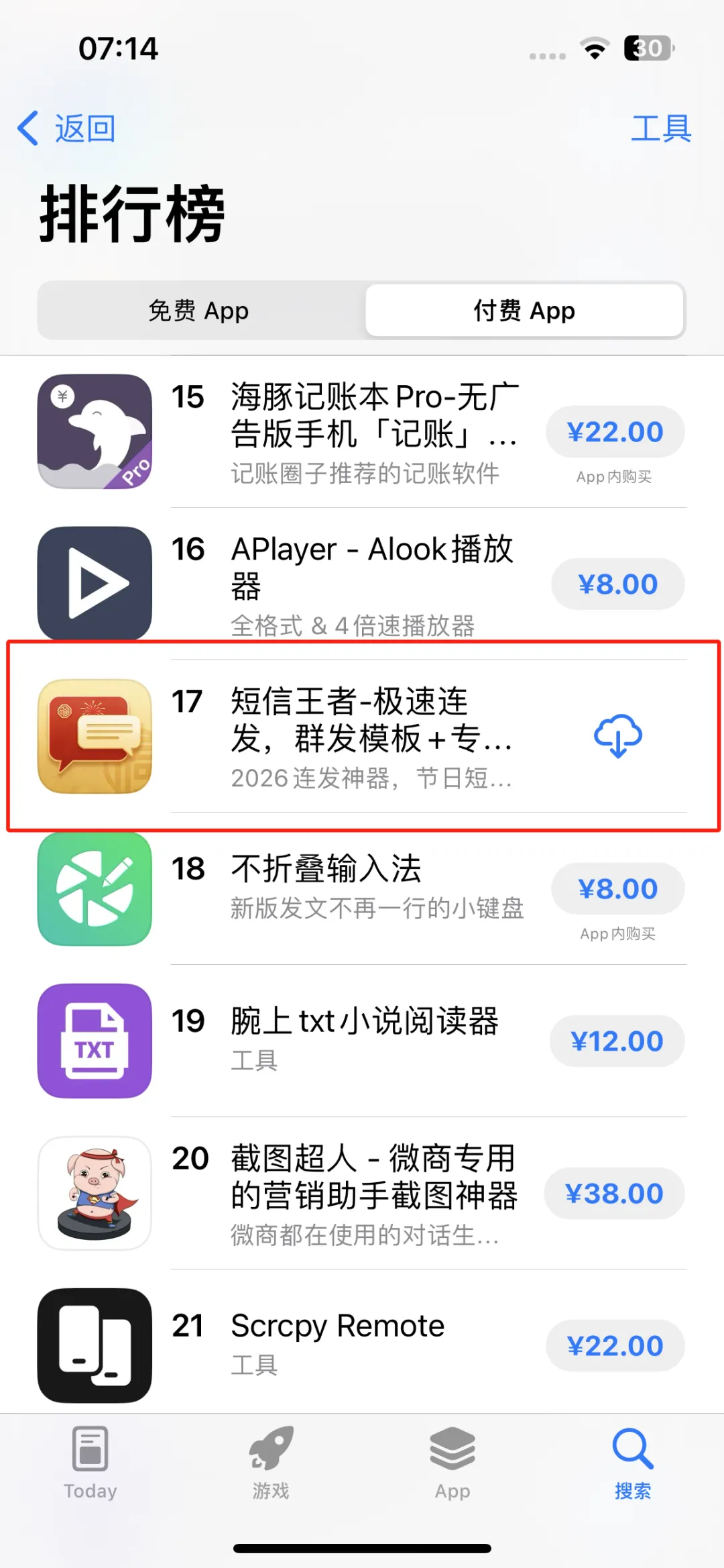 App Store的排名算法里,下载量是核心指标。当一群真实的用户主动推荐给另一群真实的用户,下载量就会稳定增长,排名就会稳步上升。